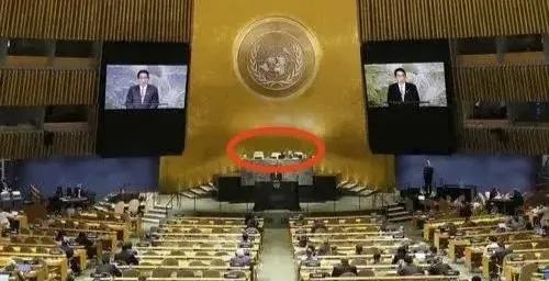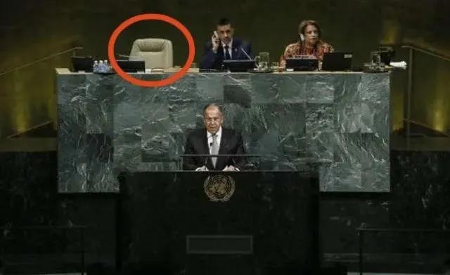 联合国大会上出现了戏剧性的一幕,主席台坐着3个人,最左边的是秘书长古特雷斯。