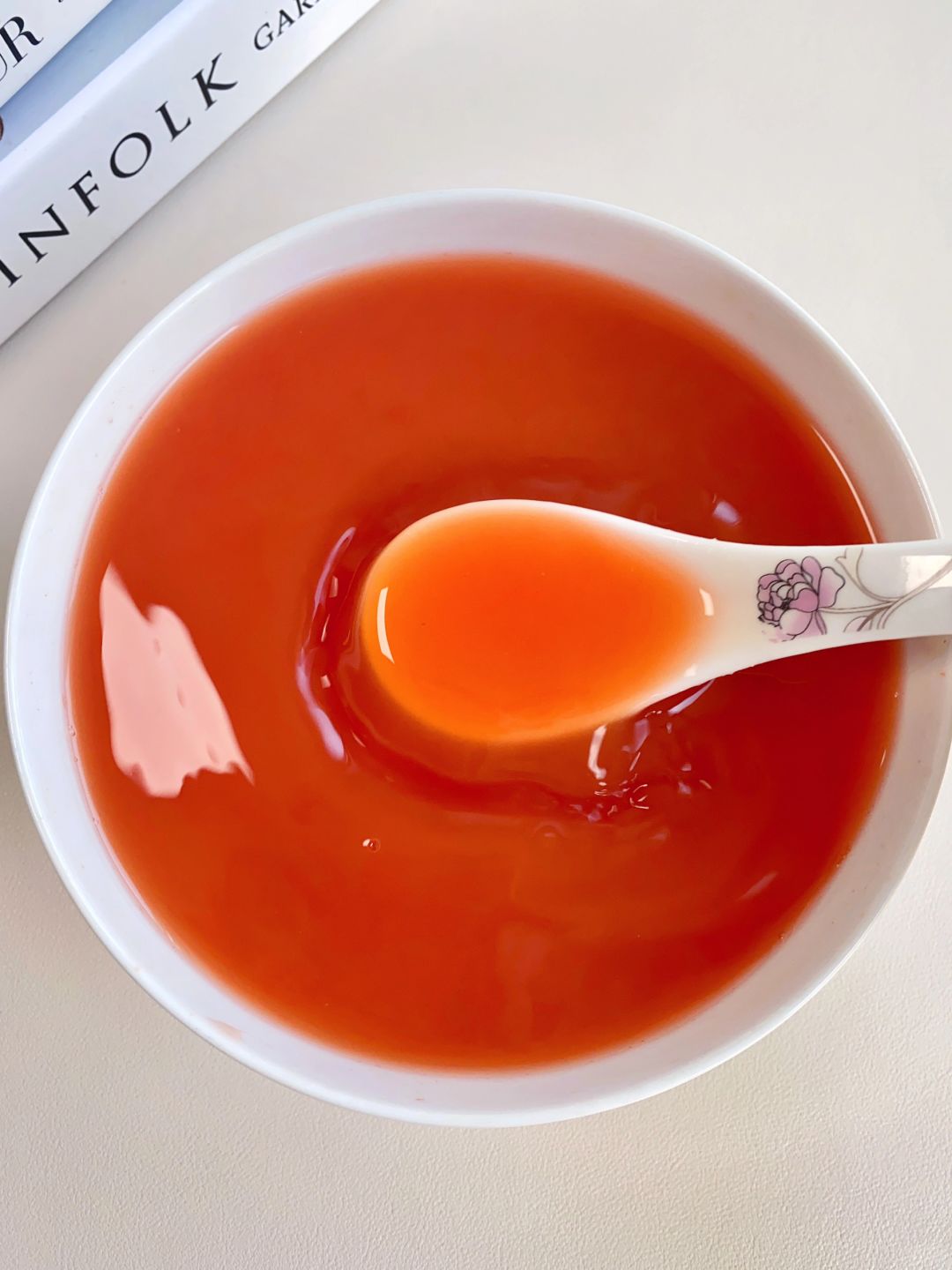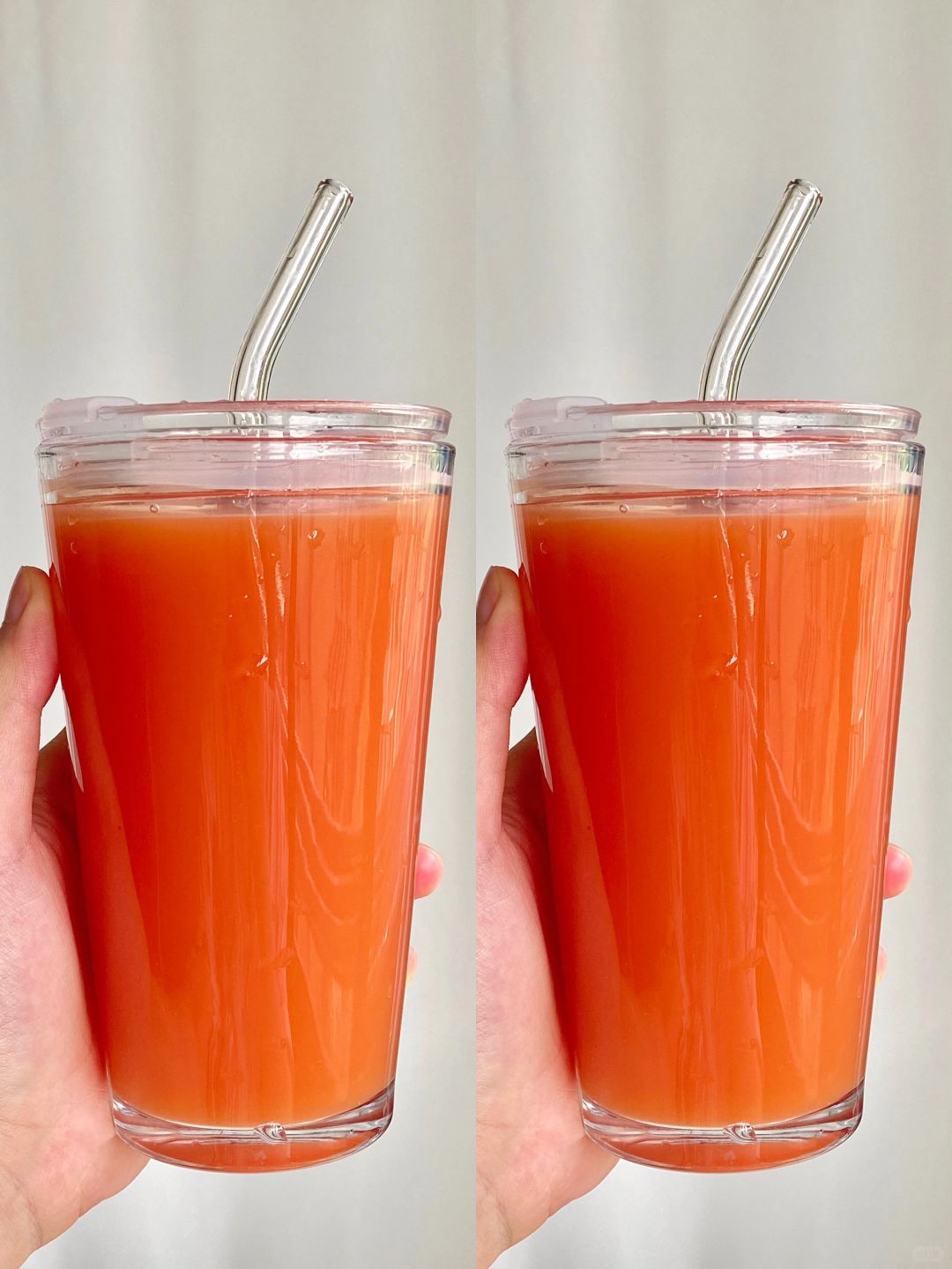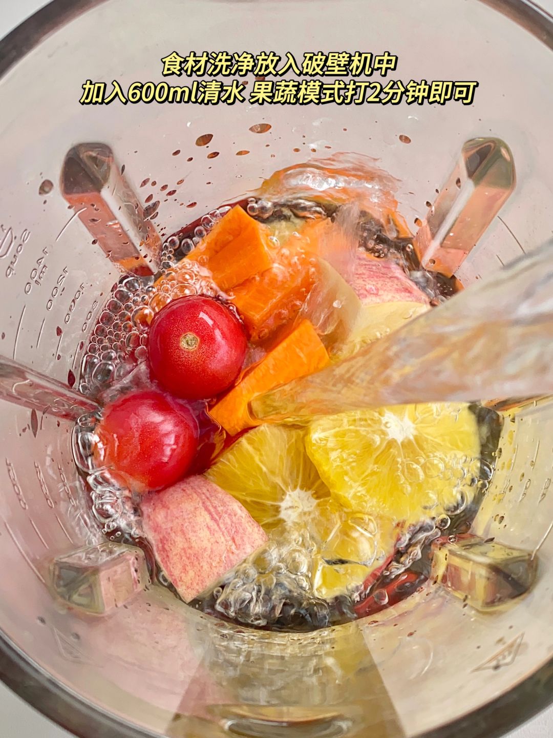 经常熬夜、户外日晒[太阳R]、小脸腊黄的姐妹一定要喝起来! 平时火锅重口味吃的比较多!还不爱运动!可以适当喝一点温热的果蔬汁哦!!清爽又解腻,营养也补充了~这杯富含VC和番茄红素,对👀和🧏🏻♀️皮肤不要泰友好! 📝食材:苹果半个、橙子半个、番茄、胡萝卜半根 ✔️做法:食材清洗干净放入破壁机,加600毫升水果汁模式打2.5min,打好后可以加热一下,激发番茄红素 做法简单5分钟就搞定啦!加热后是酸甜的口感! 还蛮好喝的!酸酸甜甜的!🧏🏻♀️真的不要太掉色了!