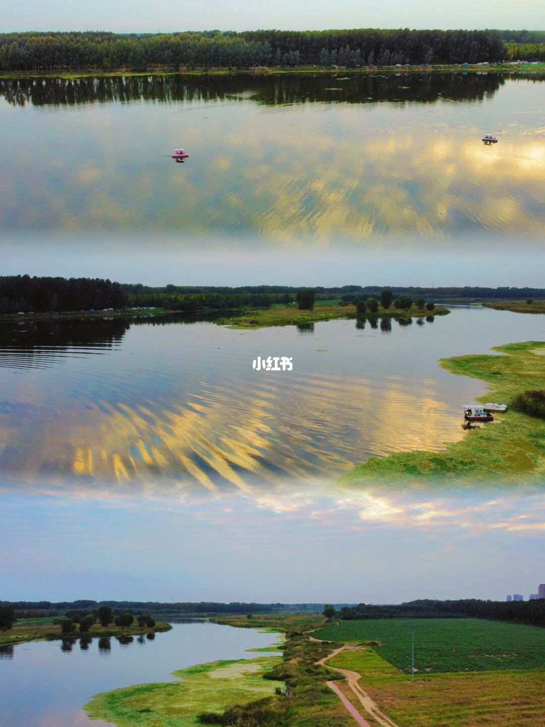 1️⃣超大水域面积,有游船可以租,10元/小时超级便宜,也可以自带皮划艇,没有门票随便玩