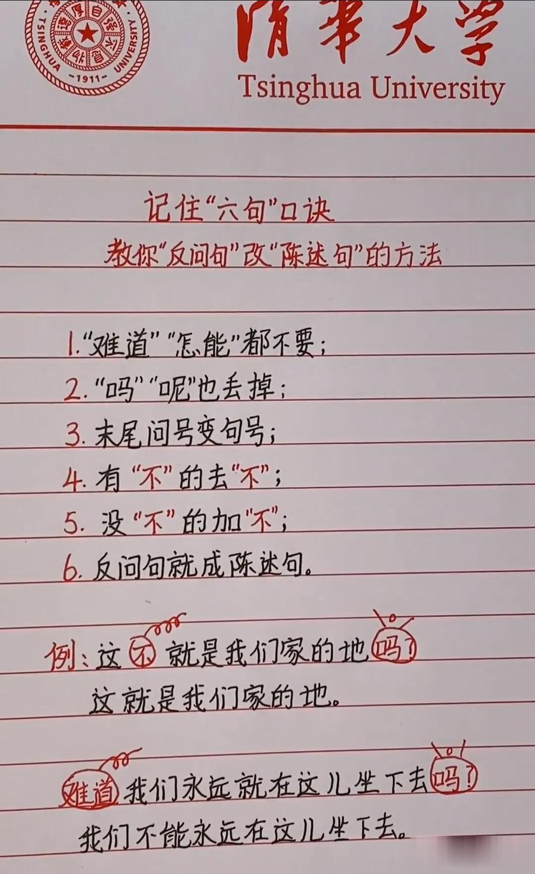 30年经验老教师熬夜总结一份口诀,竟让全班语文48人46个考高分,简直太厉害了,一个口诀全掌握,简单又好记!比如缩句口诀、反问句改陈述句口诀、标点符号口诀、修改病句等,有方法有技巧有例题,一目了然,轻松掌握,家有孩子的赶紧收藏保存下来!没事读一读,记一记,练一练,打牢语文基础,高年级不发愁! 语文基础句式训练大全