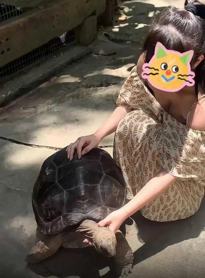 哈哈😄我忍不住笑了!现在美女都不养宠物狗,改养大乌龟了!