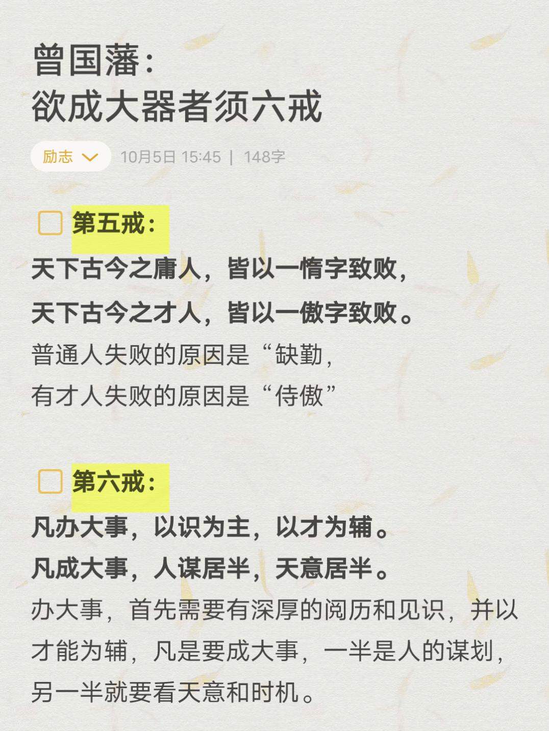 #曾国藩名言 欲成大器者须六戒,#家庭育儿小知识 #家庭教育新思维#教子有方#精选书单
