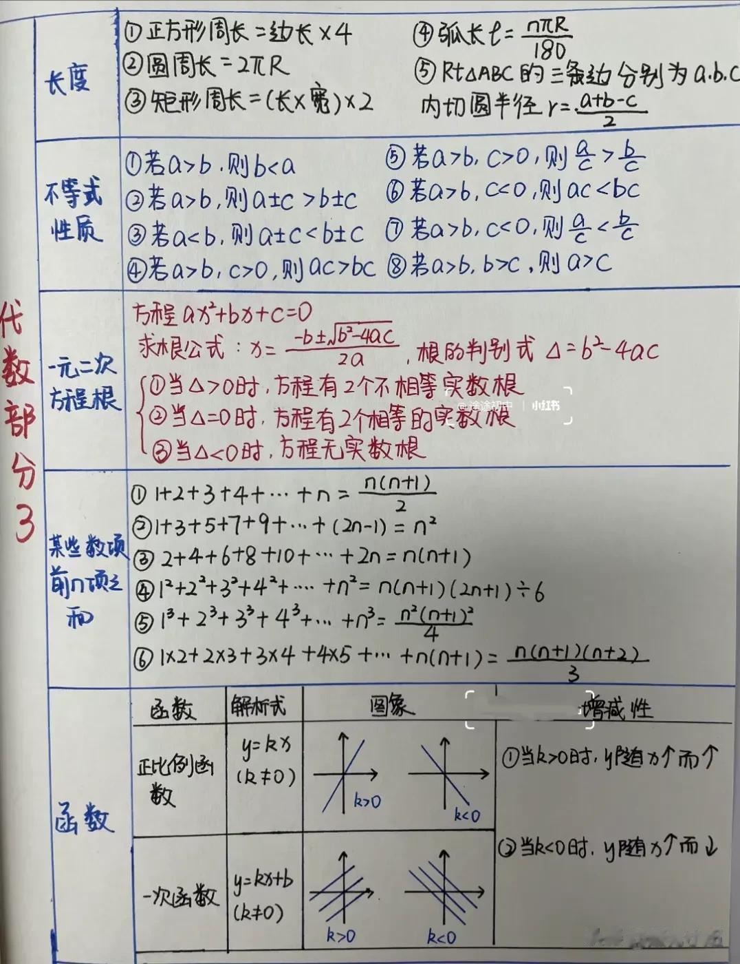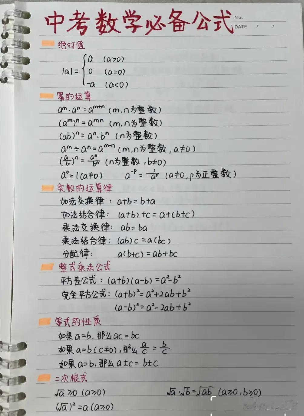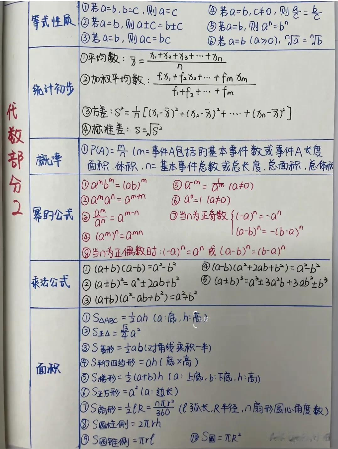 学霸都在背的中考数学公式!!看完之后,简直惊呆了,一目了然,没有比这更专业更贴心的整理了!这几张初中数学公式表,初中三年都有用,都是学霸熬夜手写出来的,家有孩子的赶紧借鉴学霸的笔记,吃透,做题信手捏来,轻松提分!特别是基础薄弱的考生,一定要记得保存打印出来! 初中数学解题妙招