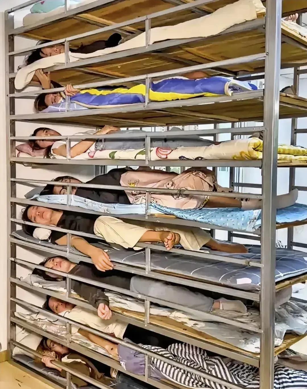 这两天时不时就刷到这两张图片,有人说这是某工厂的宿舍,有人说这是某学校的学生宿舍,到底是哪里的宿舍啊,谁设计出来的床位?有谁知道的,说出来,让大家认识认识。