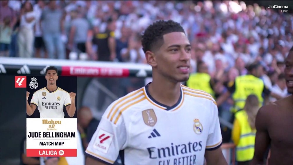 9轮8球!贝林厄姆开挂了! 皇马4-0大胜奥萨苏纳,贝林厄姆梅开二度。至此,他8场联赛打进8球!开挂了,绝对是开挂了! #贝林厄姆9轮8球#