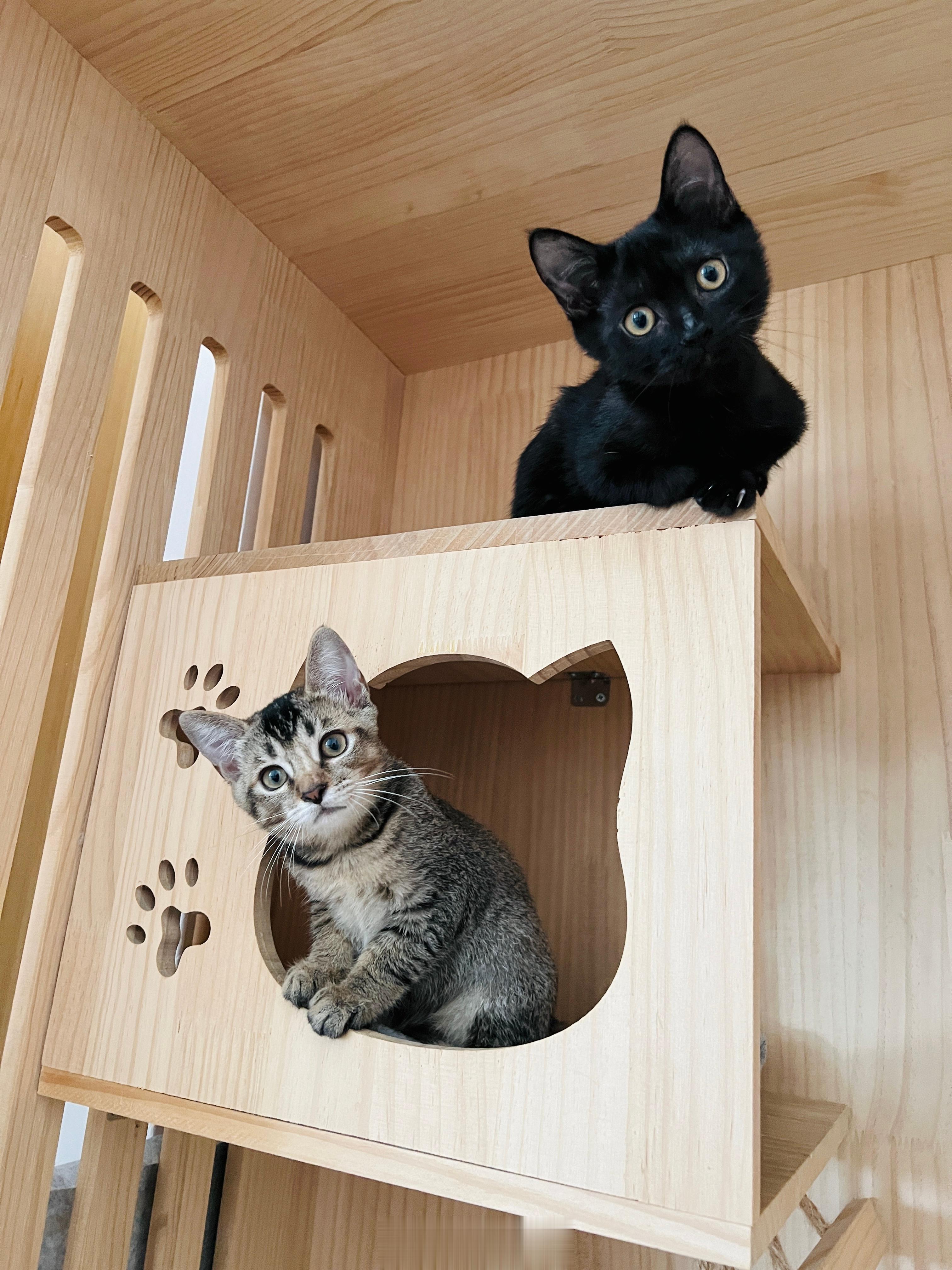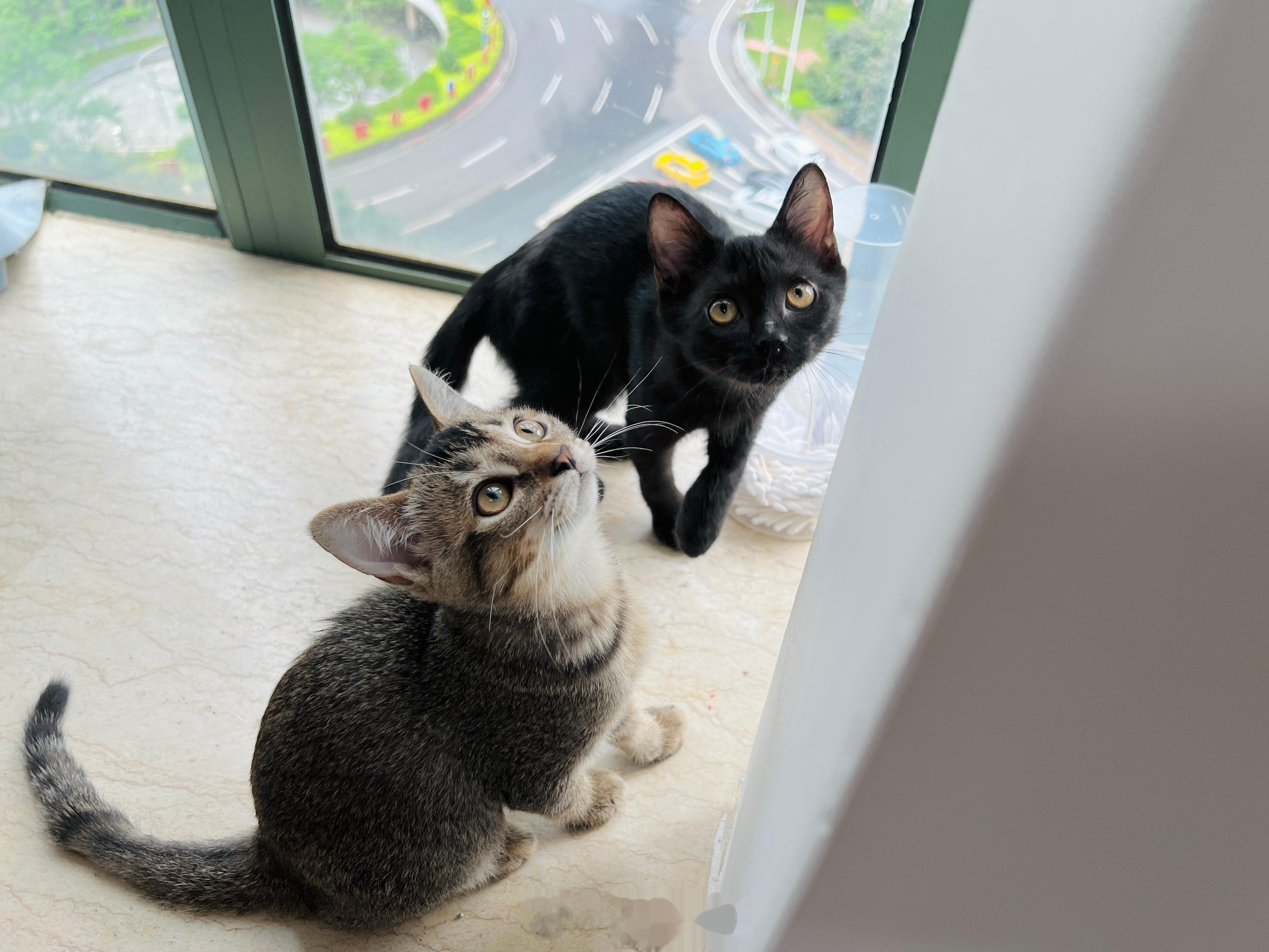活力旺盛的黑黑虎斑兄妹,喜歡環抱打鬧、抱著就嚕呼,尋找領養家庭,請內洽❤️