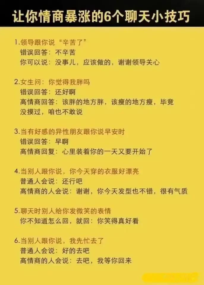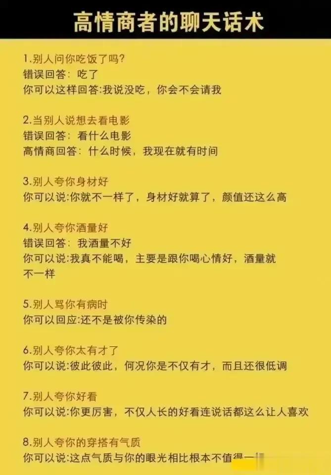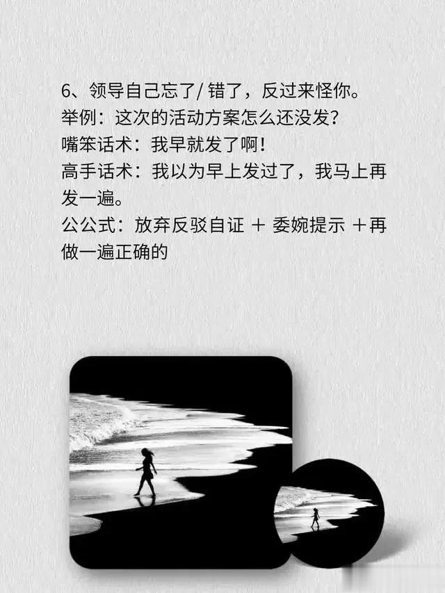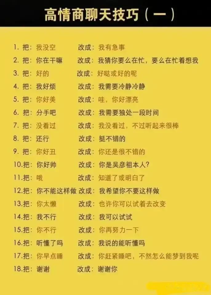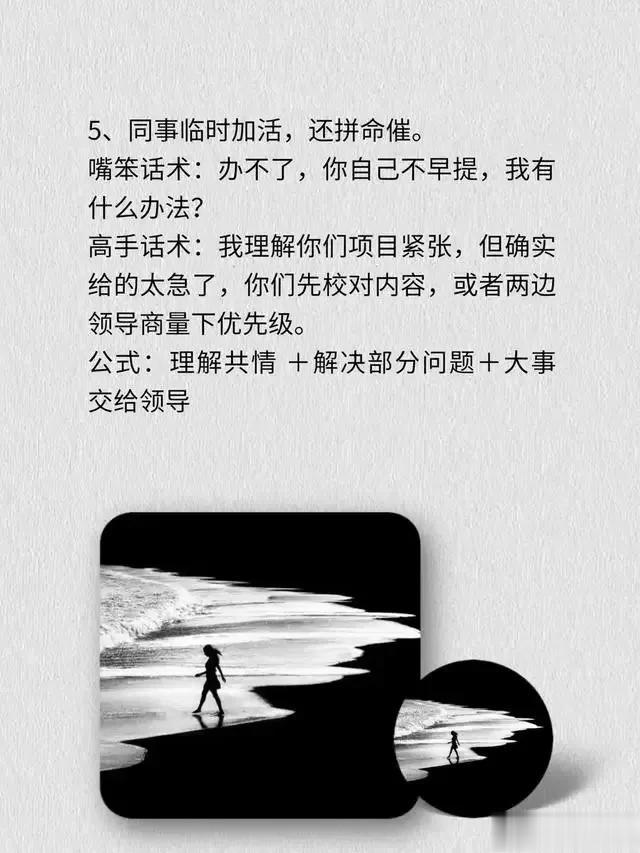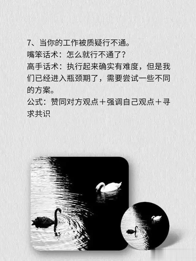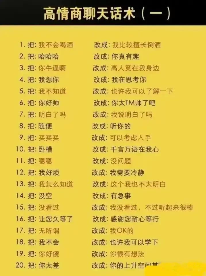 天呐,第一次见到这么全的高情商沟通话术,看完之后,真是句句让人惊艳,果然懂得沟通的人就是厉害,按照这些话术去说,不止同事会对你刮目相看,还会深得领导的芳心,增加提拔的机会。 没事多学一学高手的沟通智慧,把这份社交沟通技巧吃透,以后保准让你不吃亏,人缘倍好,升职加薪机会大增。 中国式沟通智慧