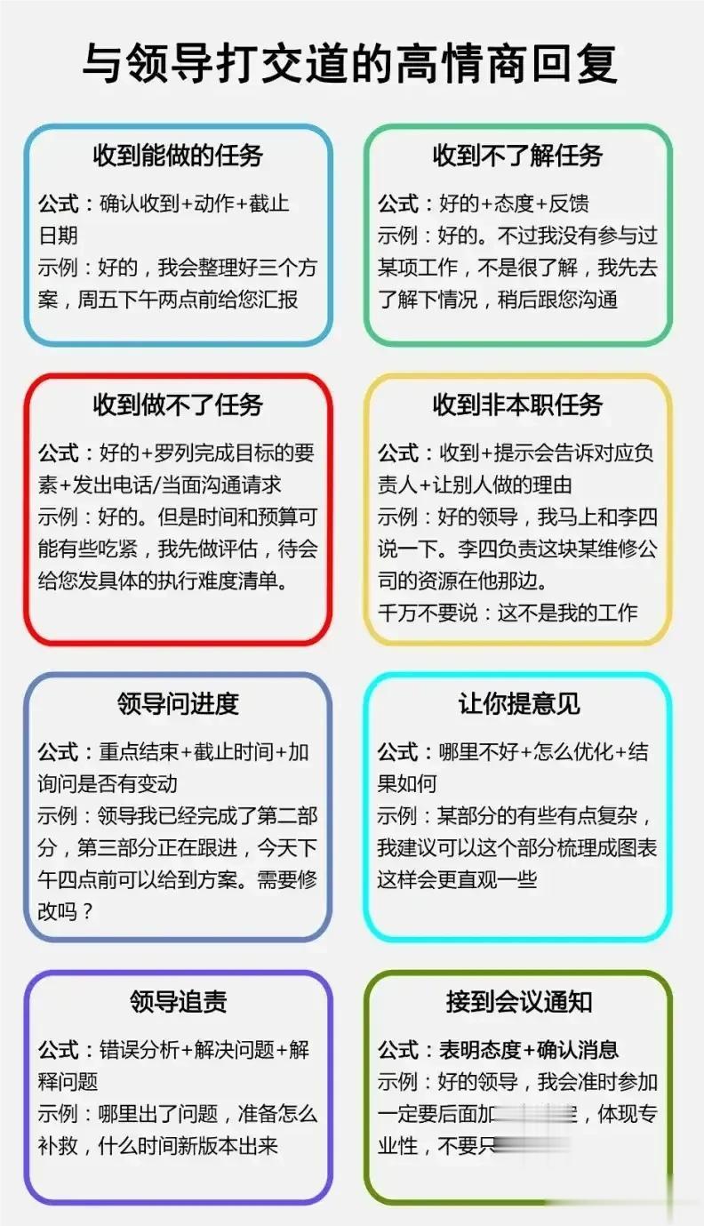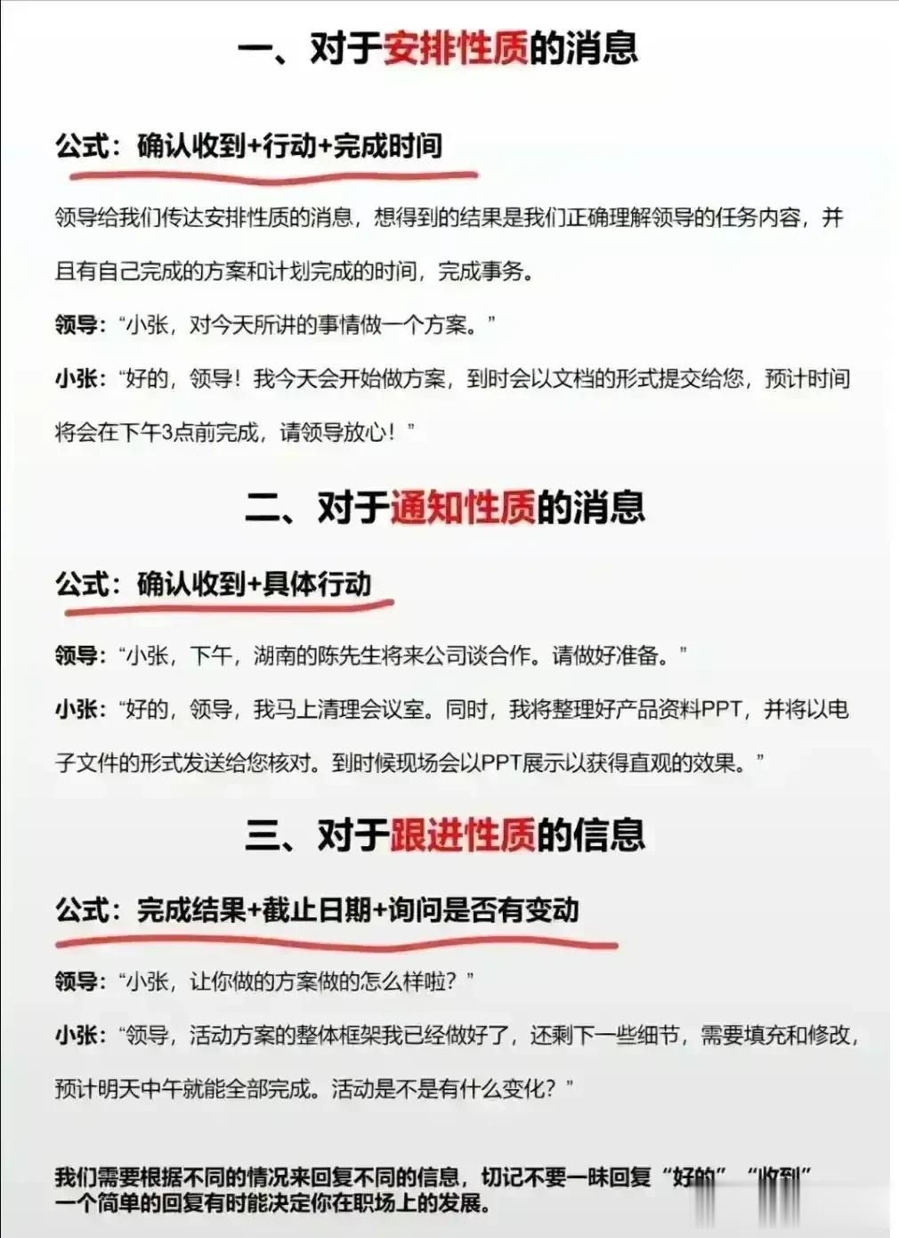 在工作上,千万别回复领导“好的”“收到”,看完之后,才明白职场高手的回话技巧,总能把话说到领导的心坎里,怪不得能深入老板的喜爱,不佩服都不行!后悔知道的太晚了! 回话是一门技术,把回话的技术吃透,尽早掌握回话的精华,从此回话滴水不漏,升职加薪的机会大大增加!!更多技巧下方链接走起! 回话的技术