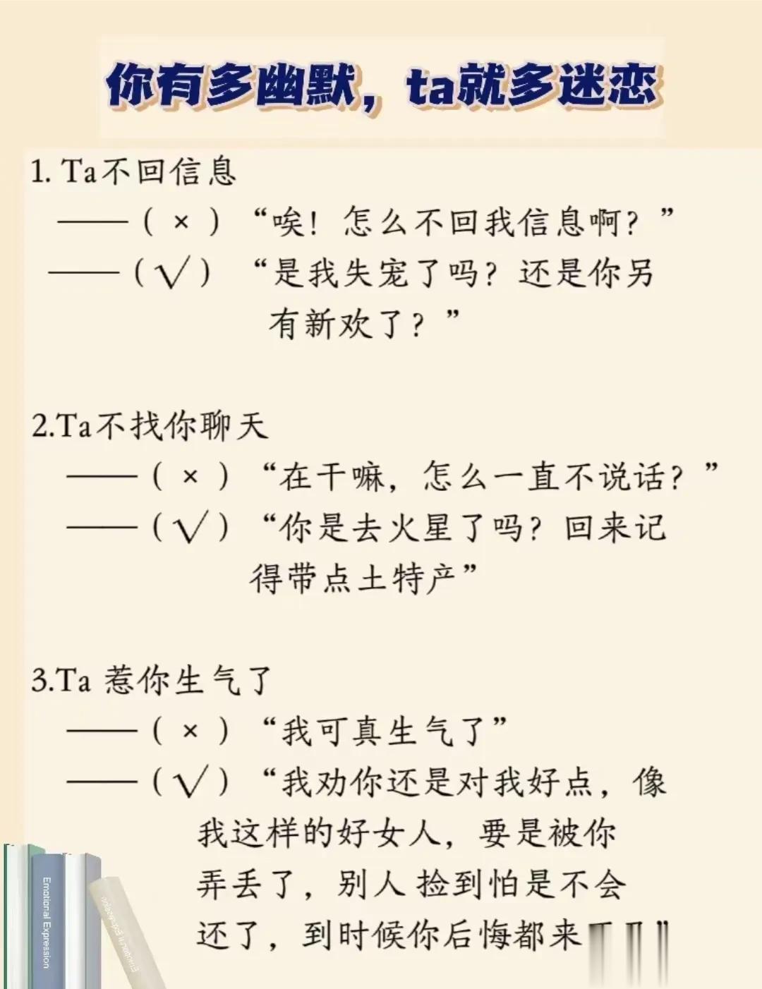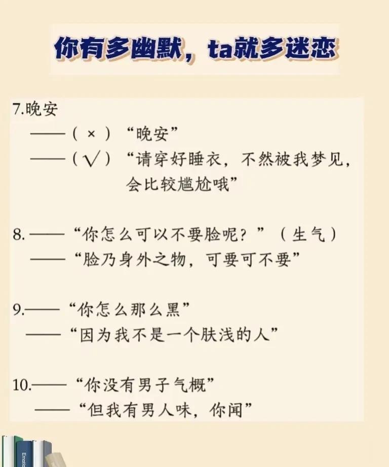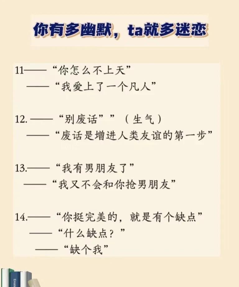 你有多幽默,ta就多迷恋!这份高情商幽默话术是我见过整理最全的,每天看一遍,让你的魅力提升,幽默细胞突飞猛进!能让你在生活中轻松聊出感情,在职场上聊出机遇,生活事业双丰收! 赶紧学起来! 人与人的关系,从沟通开始。高情商,就是说能让人舒服的话,良言一句三冬暖,良言是一种智慧,幽默是一种艺术,更是一种智慧。幽默感是可以培养出来的,赶紧下方链接系统的学起来! #怎么提高表达力# 幽默让你充满魅力