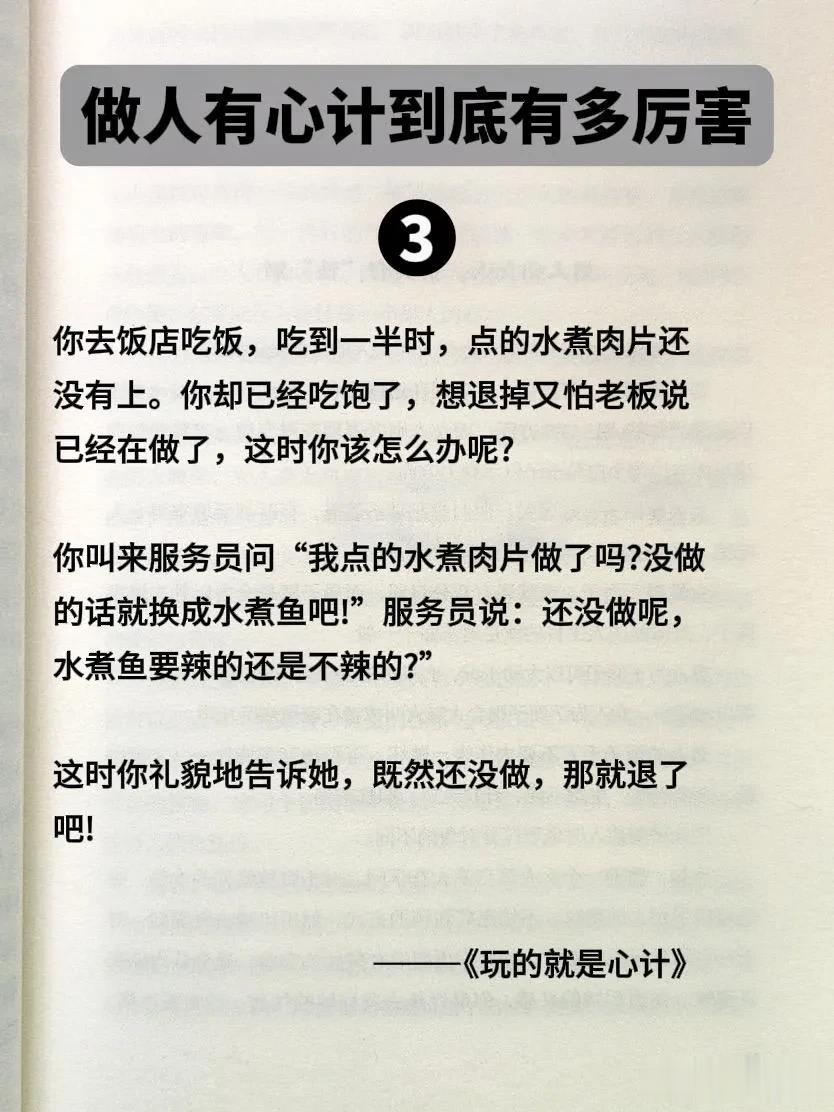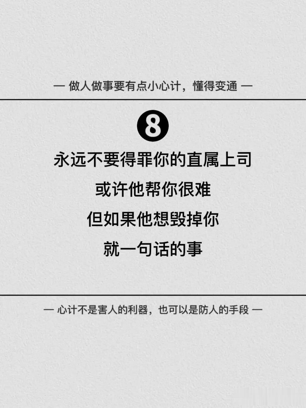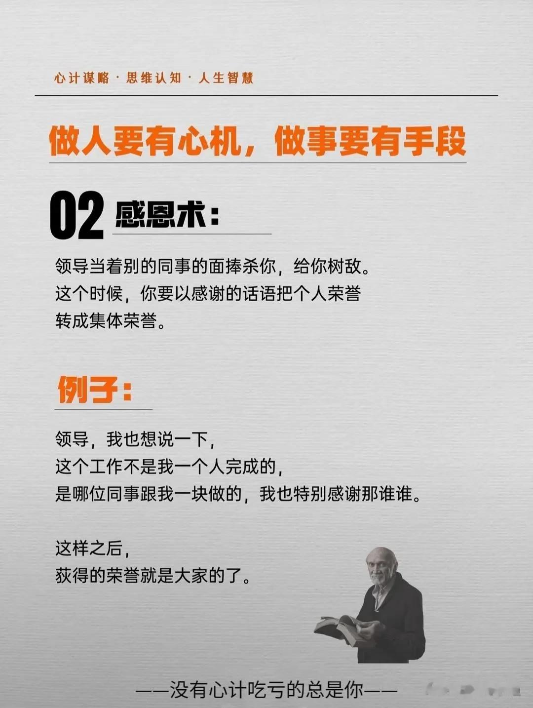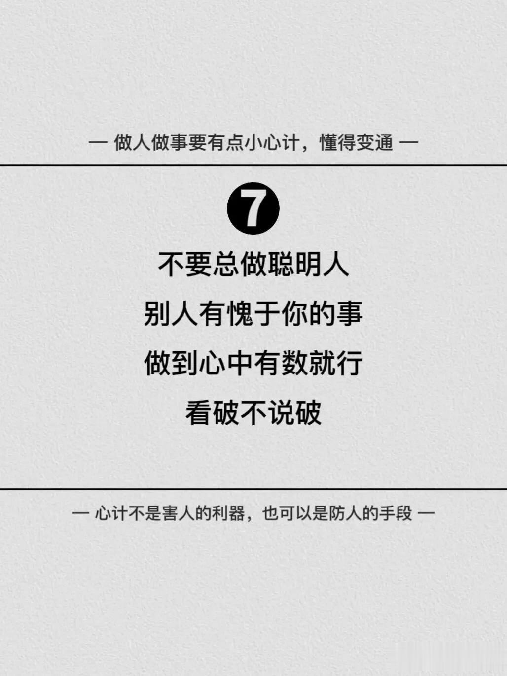 一位混迹于职场多年的老领导直言:没有心计吃亏的总是你,做人要有心机,做事要有手段,被人捧杀3招轻松回击,学会悟透了,才能在各种人生场合中左右逢源,游刃有余。这才是真正的高手手段,赶紧学起来! 一个人之所以被人拿捏,是因为你完全不懂心计,从而陷入别人为你设计好的陷阱当中而不自知。许多时候,学会变通,才能立于不败之地。 心计不是害人的利器,也可以是防人的手段。它可以让你在人际交往、说话办事、商业谈判、职场经营等方面战无不胜,成为一个能够掌控全局的人。 心计人际交往心理学