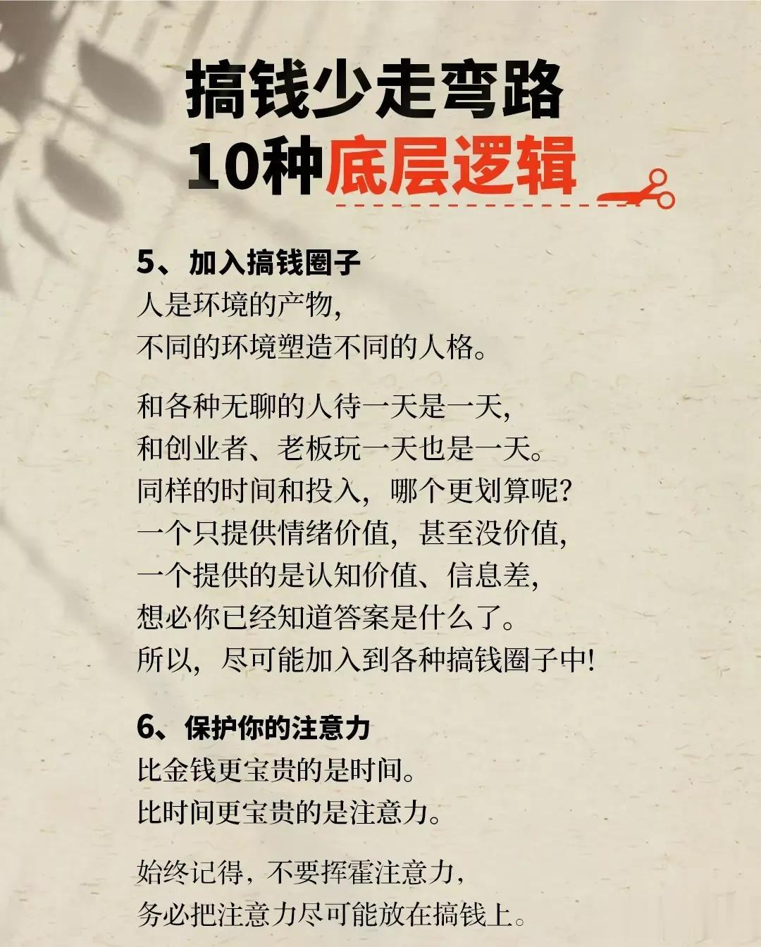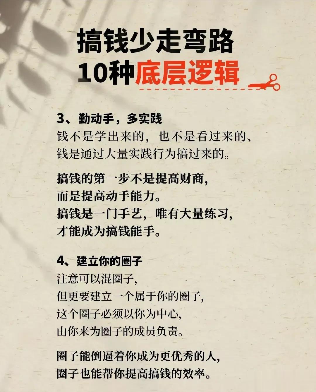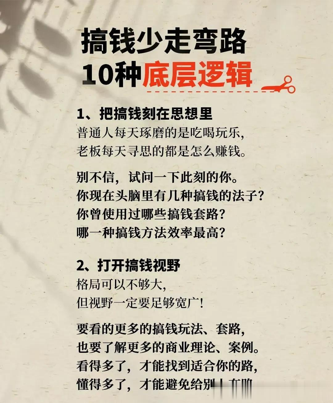 一位浙江富商直言:钱难赚了,不是经济形式不好,而是一场底层逻辑的巨大变革,在赚钱这条路上,没有天道酬勤,靠的就是你的脑子和认知。提升搞钱的思维,让你少走弯路!赶紧学起来! 底层逻辑决定一个人的命运,当你真正的懂得了《商业的底层逻辑》赚钱其实很简单! 商业的底层逻辑