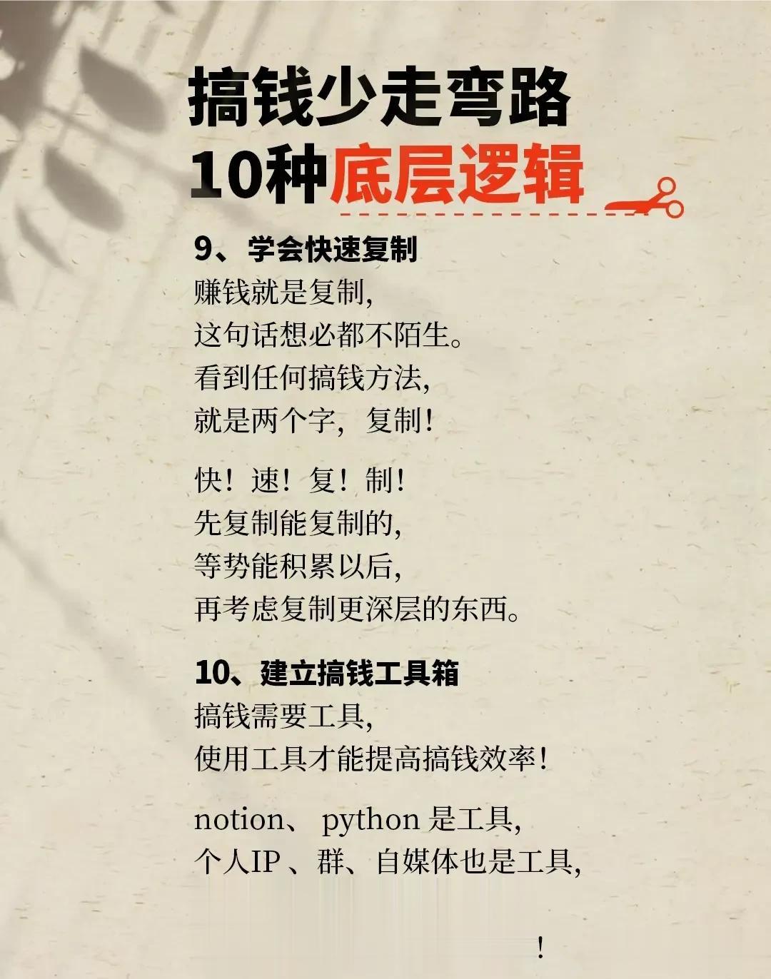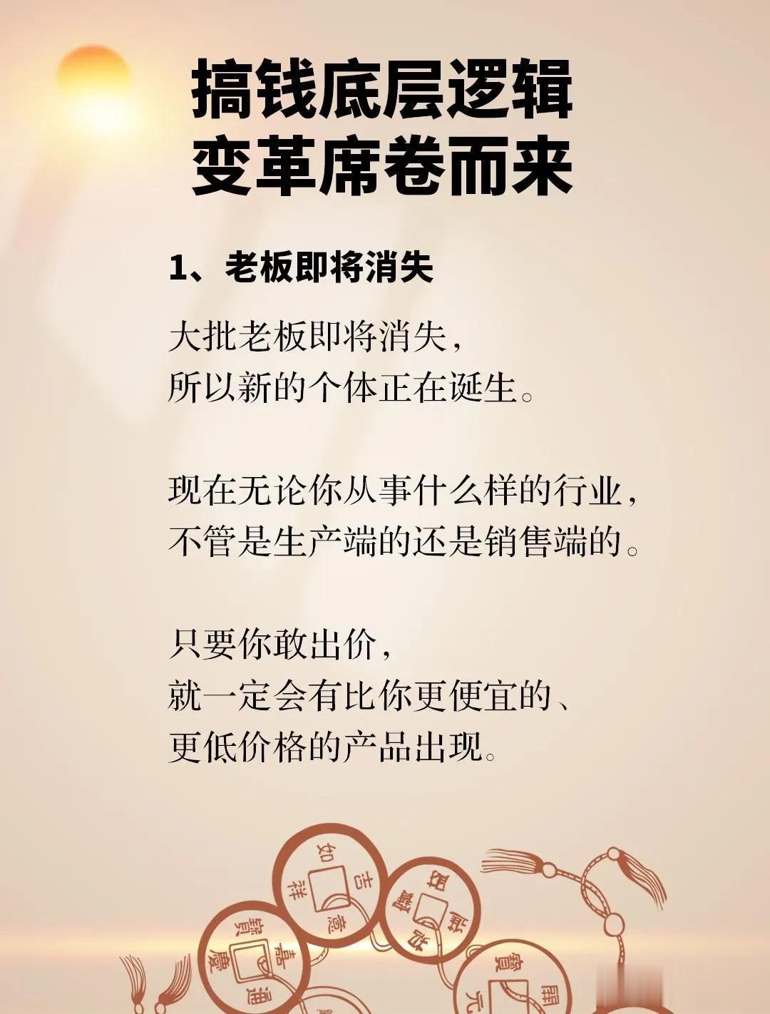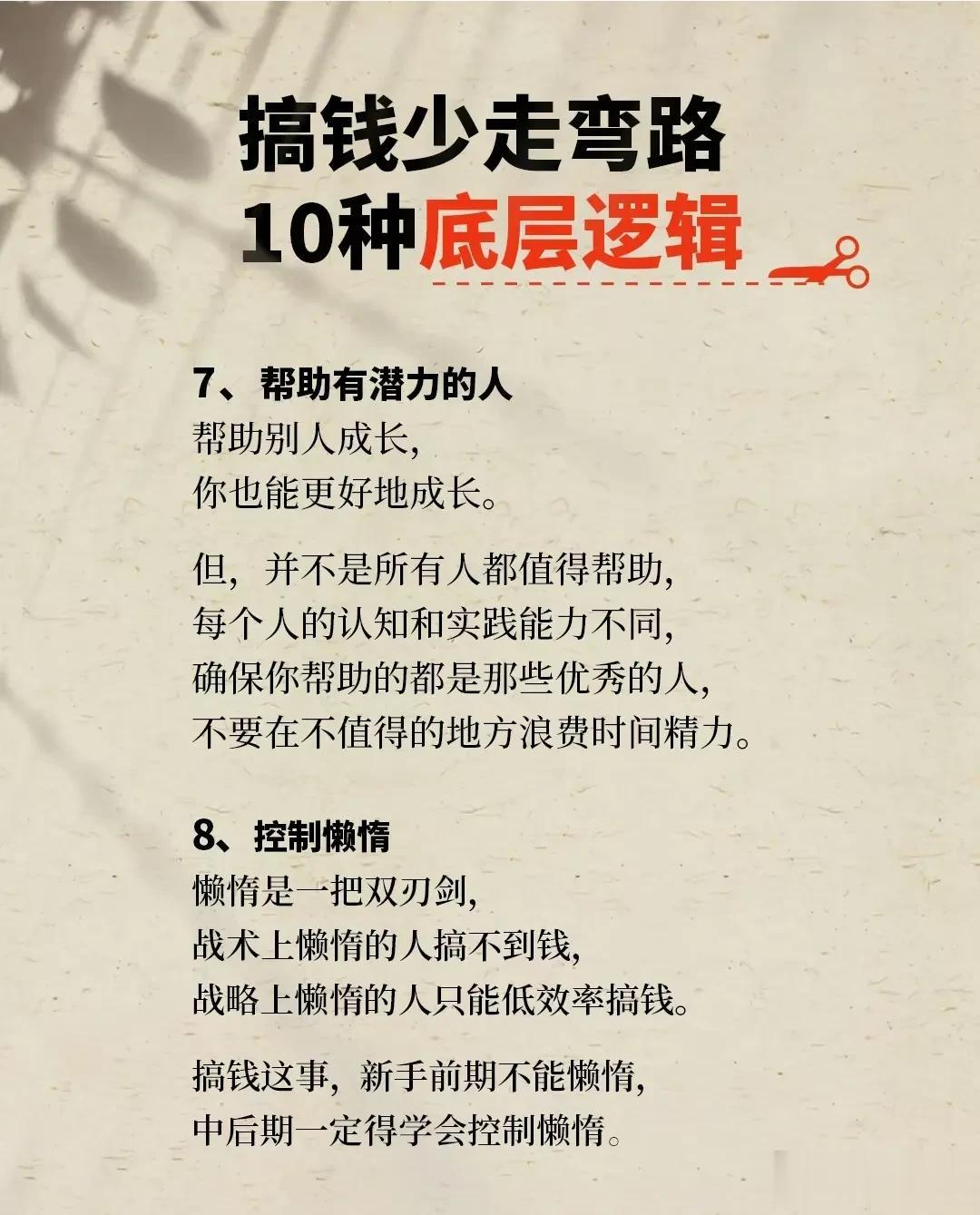 一位浙江富商直言:钱难赚了,不是经济形式不好,而是一场底层逻辑的巨大变革,在赚钱这条路上,没有天道酬勤,靠的就是你的脑子和认知。提升搞钱的思维,让你少走弯路!赶紧学起来! 底层逻辑决定一个人的命运,当你真正的懂得了《商业的底层逻辑》赚钱其实很简单! 商业的底层逻辑