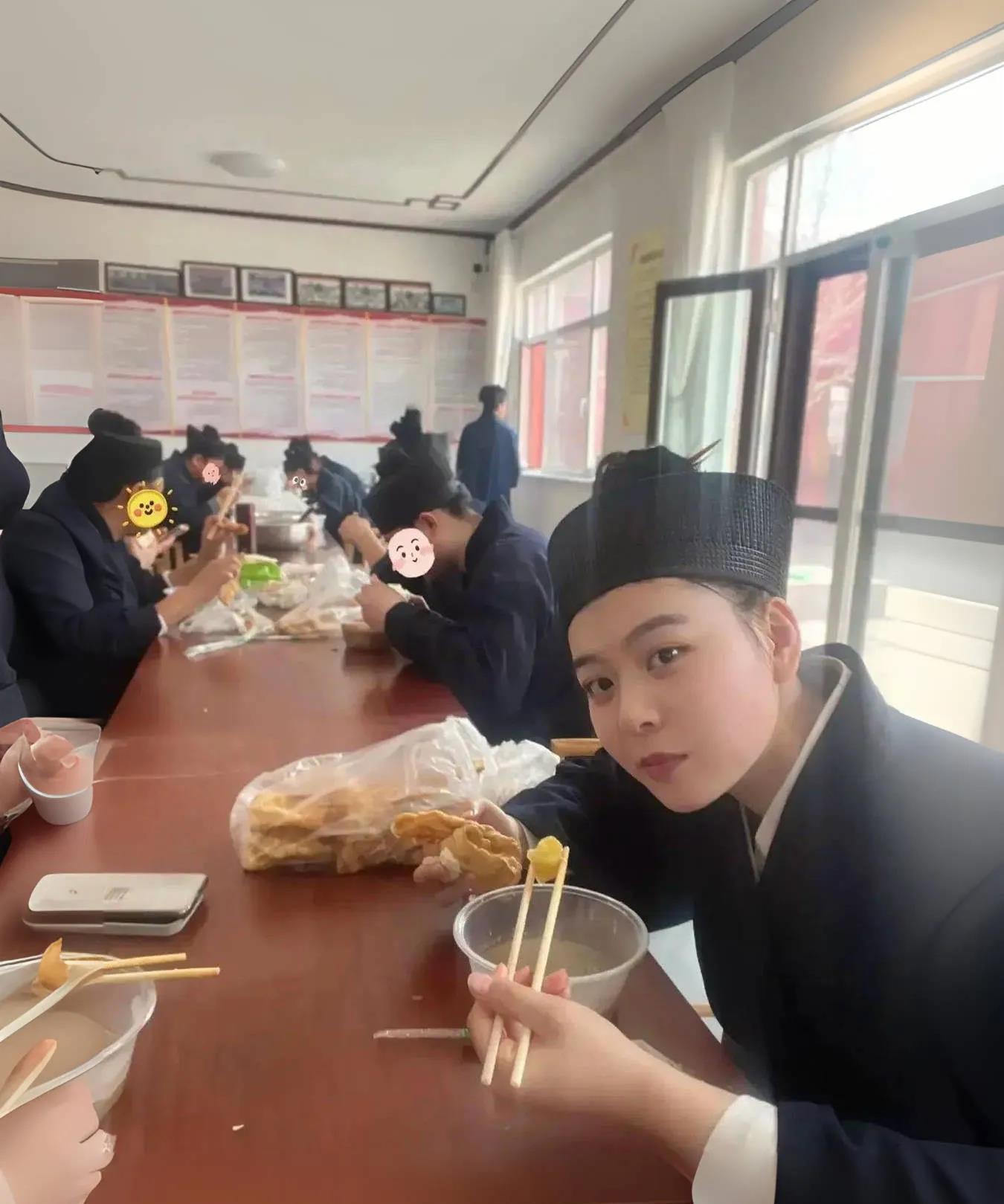 那天上山,偶然遇见了一群道姑正在享受早餐的美好时光。 其中,有一位美若天仙的小道