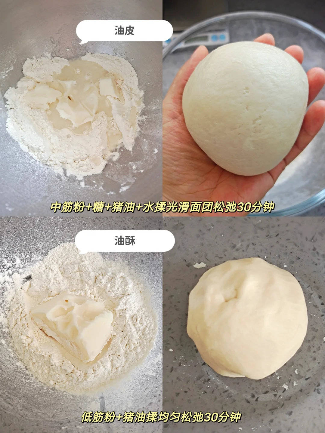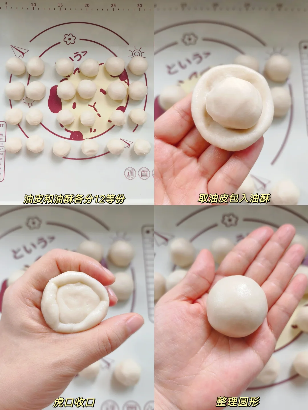 [四R]松弛好的水油皮面团和油酥平均分12份。