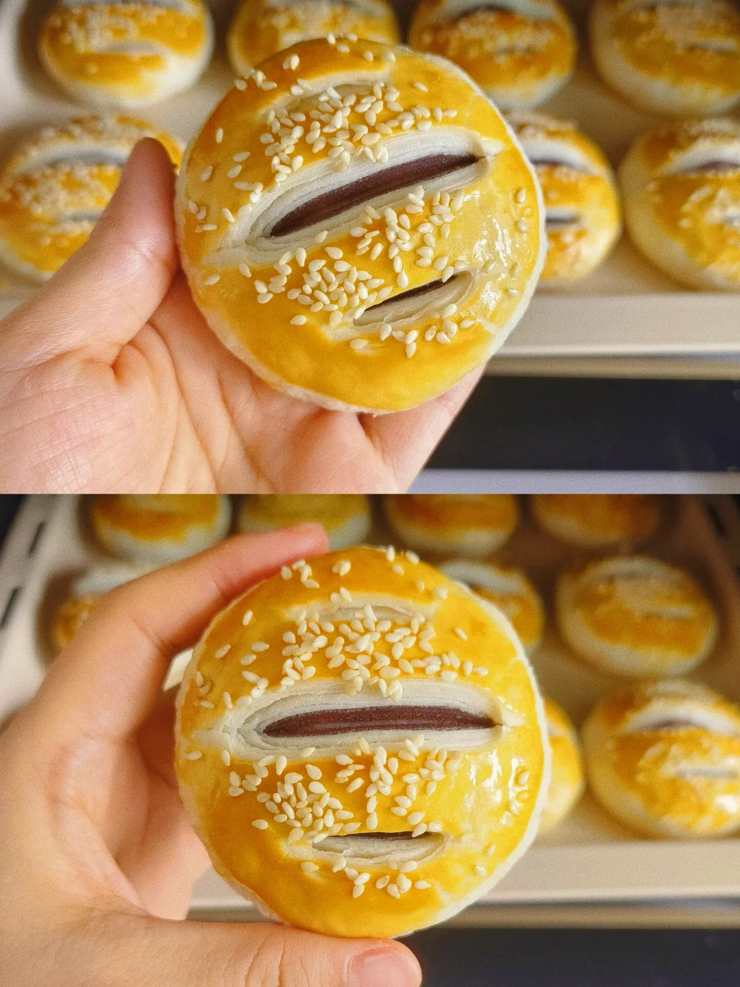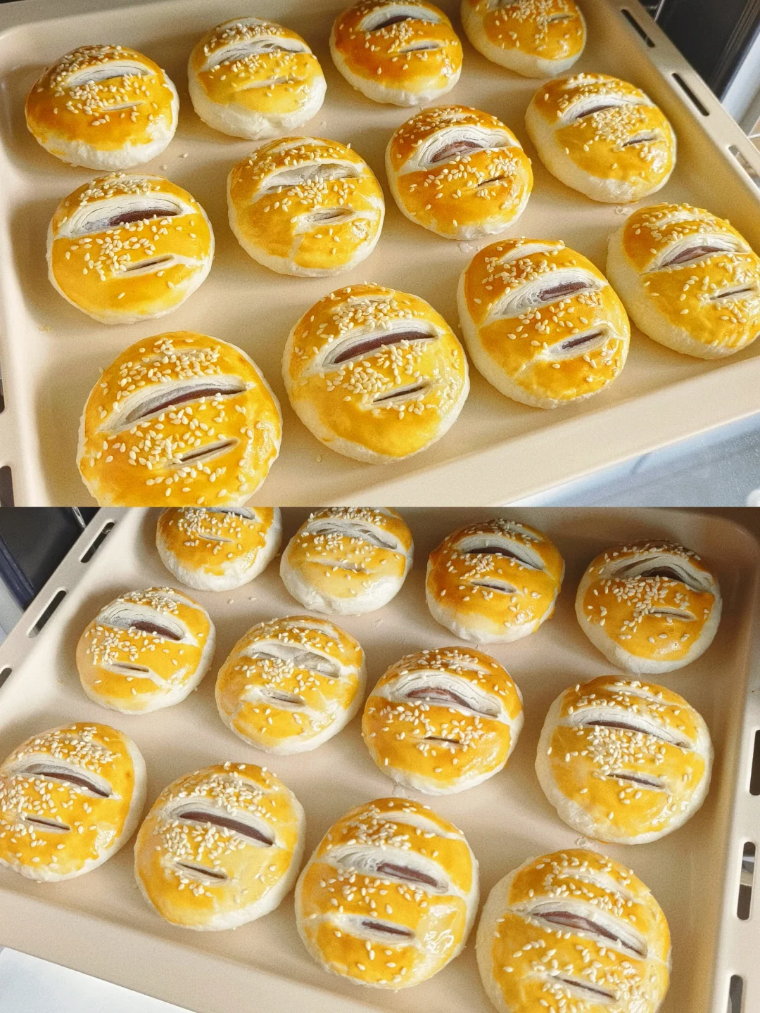 [九R]刷蛋黄液,锋利刀片割三刀,撒芝麻,烤箱上下火180度25分钟出炉