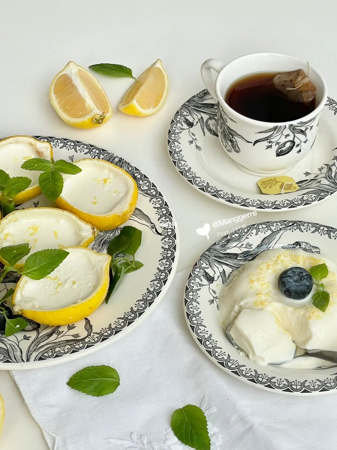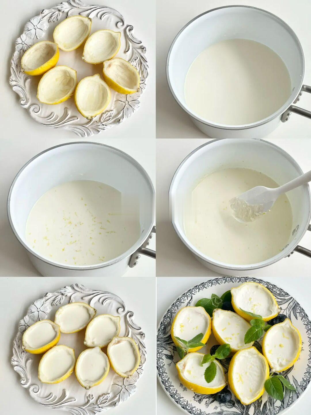 清爽柠檬奶酪布丁 柑橘香气搭配丝滑奶冻😋 💛【食材】:牛奶200g、淡奶油100g、糖20g、 吉利丁片5g、柠檬🍋3个 💛【做法】: 1、柠檬对半切块后取出果肉 2、牛奶、淡奶油、糖、加入柠檬皮碎一起煮开 3、泡软的吉利丁片加入牛奶中搅拌至融化 4、过滤一遍牛奶,倒入柠檬容器中冰箱冷藏一晚 4、食用前加入柠檬皮装饰即可