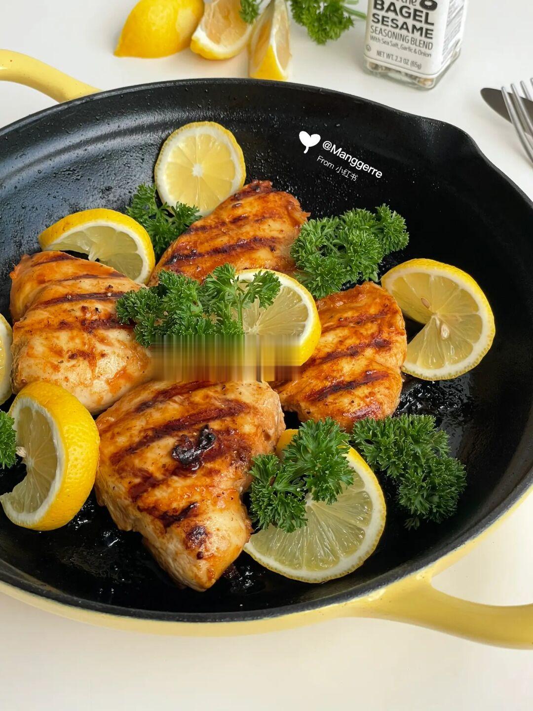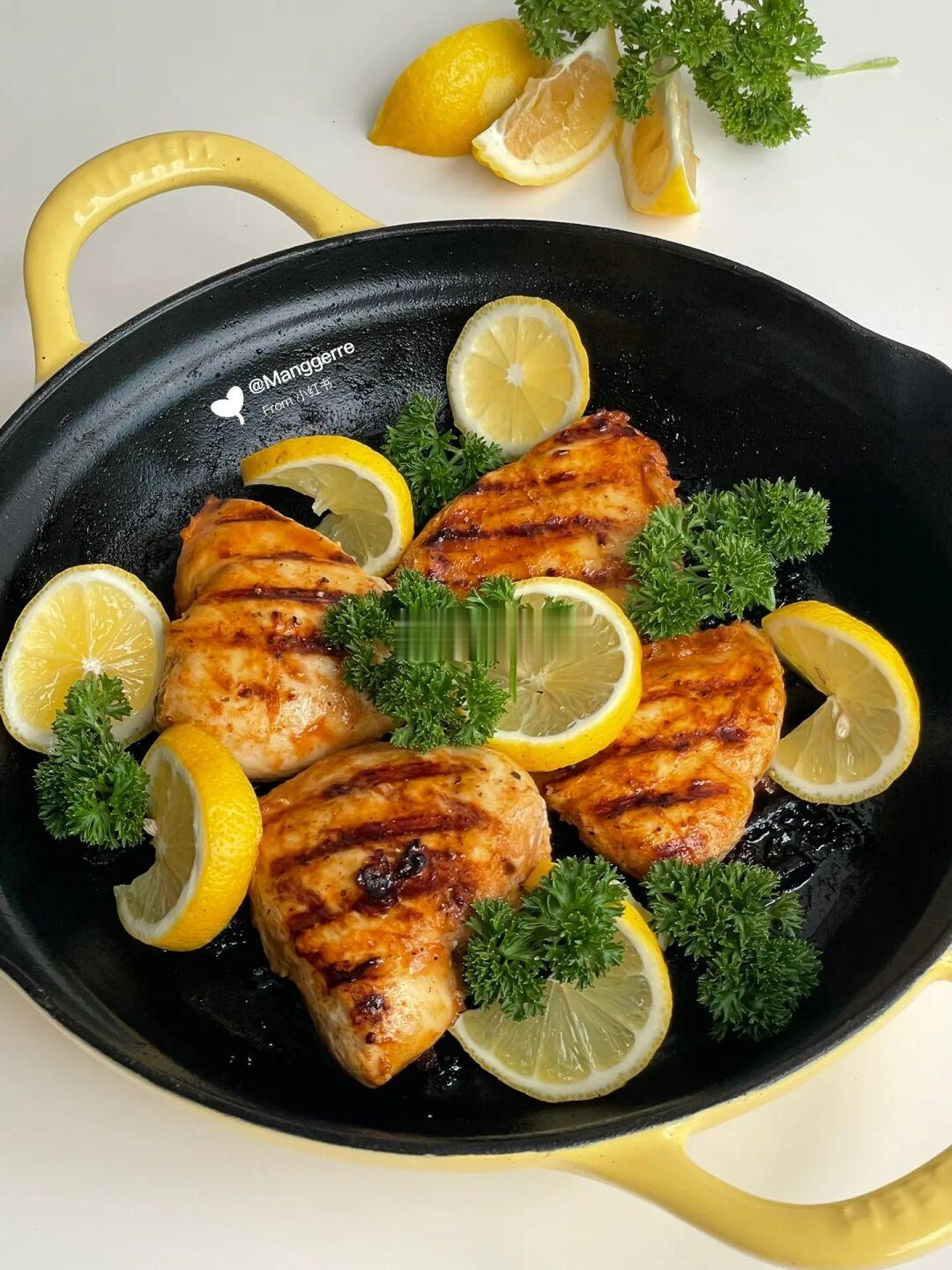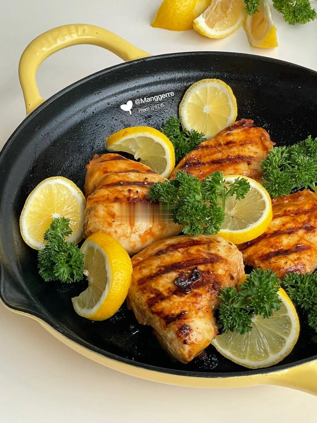 3、煎好的鸡排柠檬🍋、欧芹装饰即可