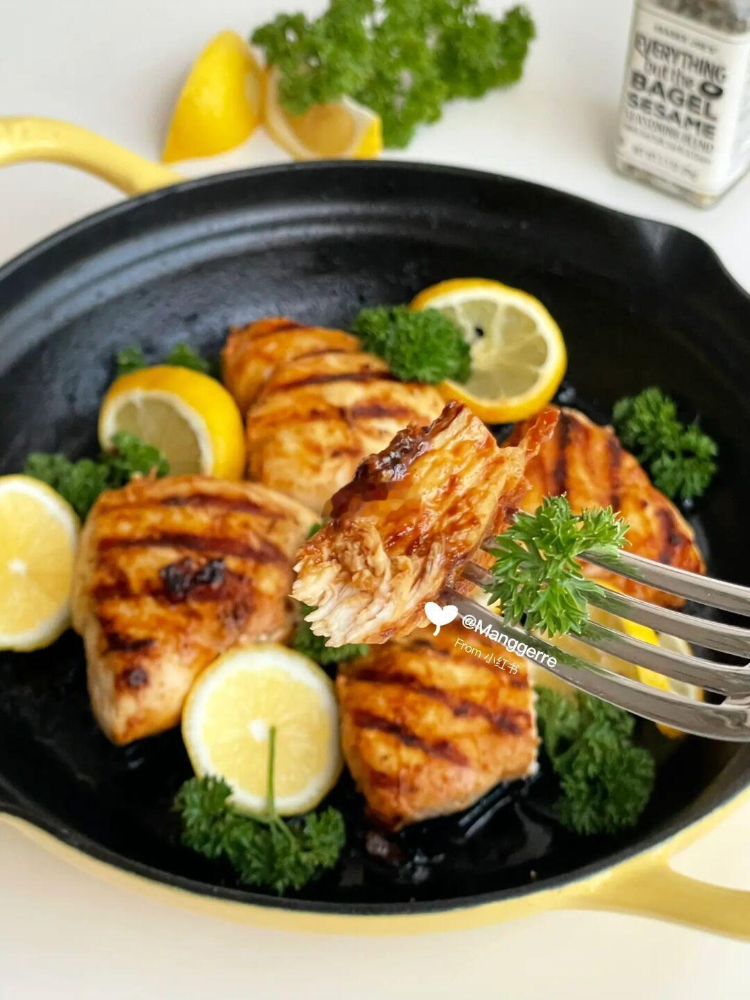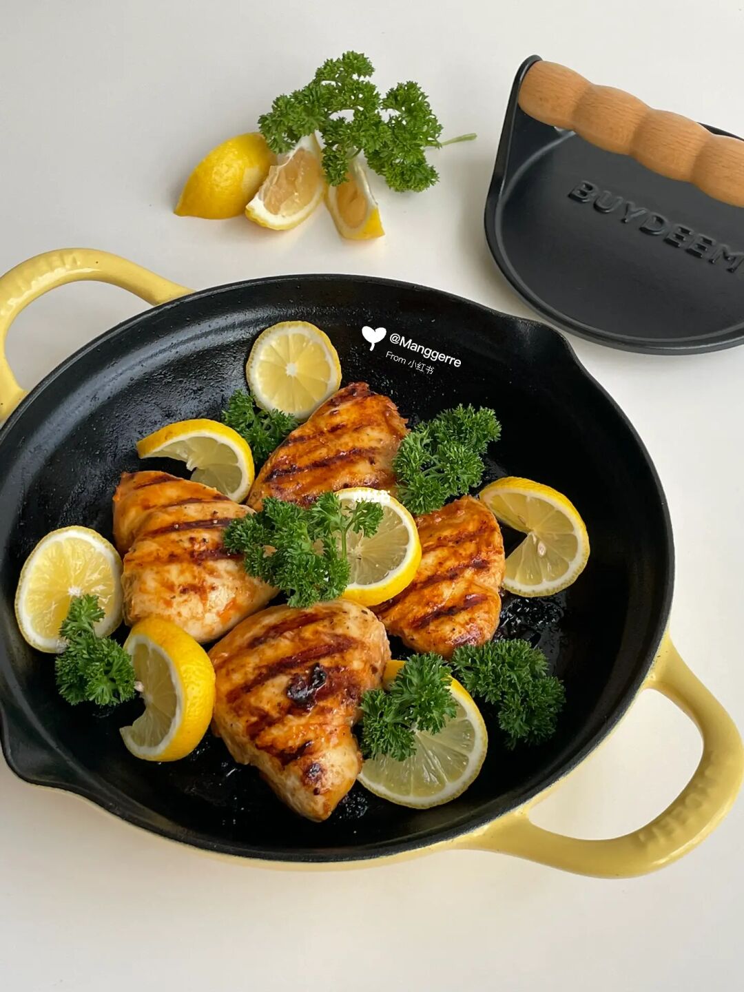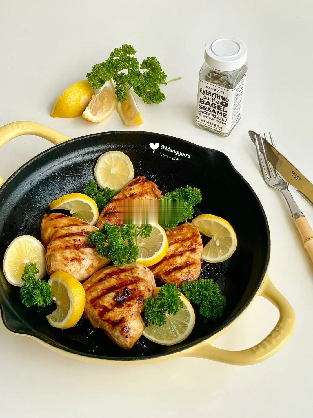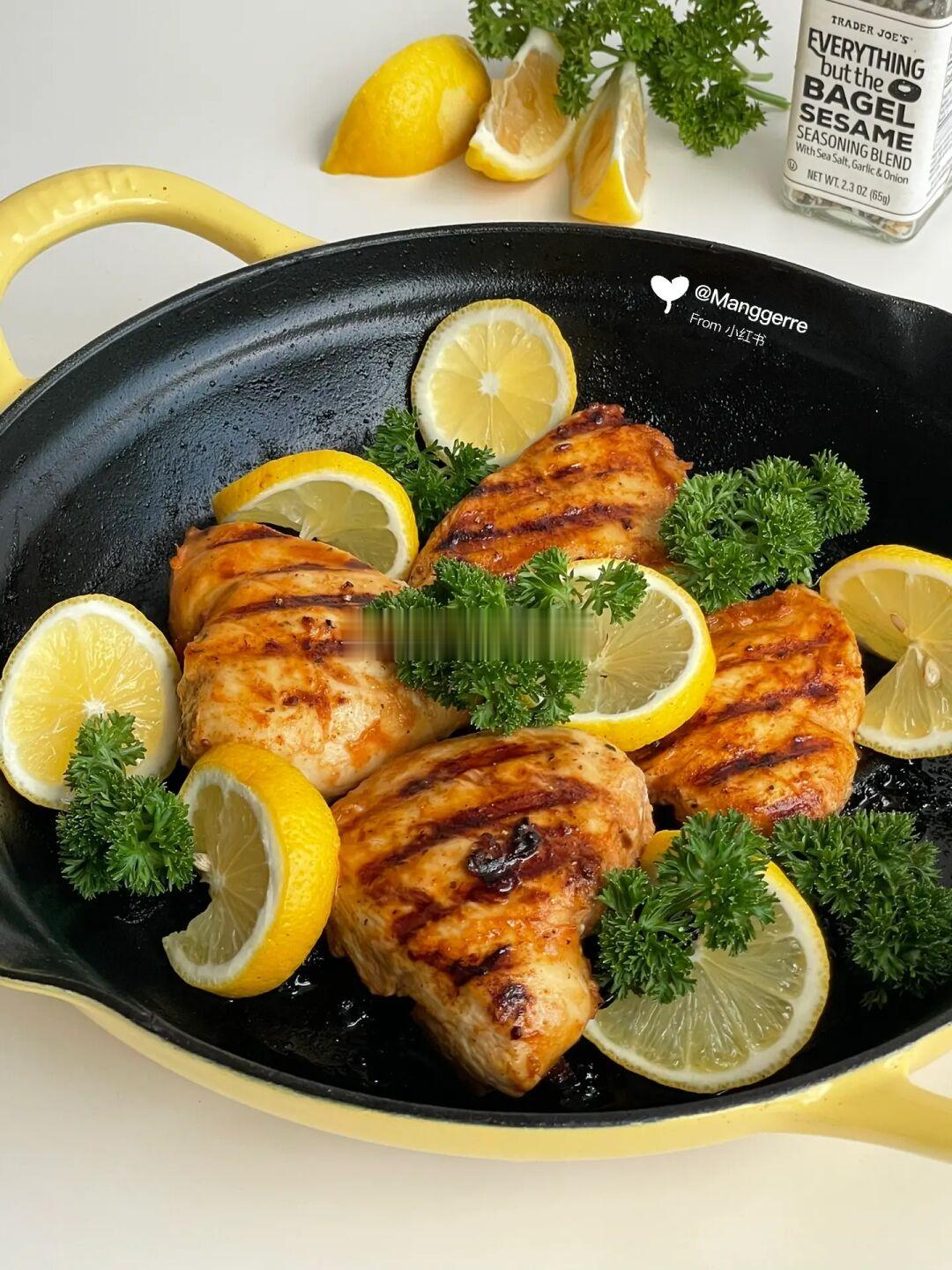 3、煎好的鸡排柠檬🍋、欧芹装饰即可