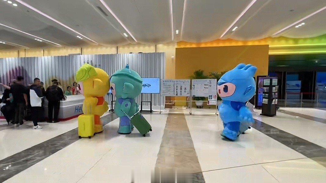 #杭州亚运会的显眼包找到了#亚运会三小只显眼包来了,不仅要自己开路还要自己拿行李,小碎步更是可爱啊