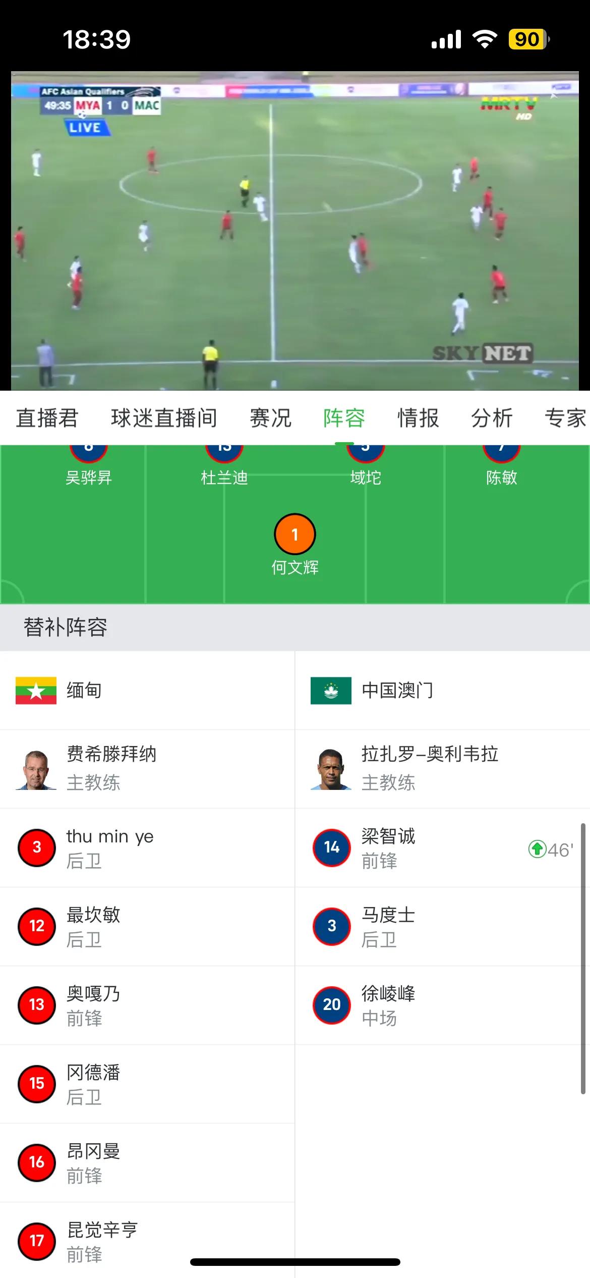 澳门球员真勇敢,竟然还敢去缅甸参加比赛!职业精神可佳,希望你们注意人身安全。正在进行的世界杯亚洲区预选赛第一轮首回合赛事,缅甸主场迎战中国澳门。值得一提的是,替补只带了3名球员,是不是有球员不太愿意去缅甸[捂脸]不过能凑齐14个去已经很不容易了。希望中国澳门能击败缅甸晋级吧!第一回合如果只输一球回到主场还是有机会的。