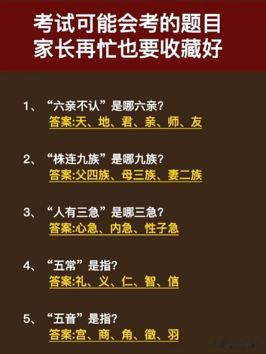 我国第一人你都知道是谁么?不愧是学霸妈妈,为了让孩子积累更多的课外知识,把中小学生常考的文学常识全都整理出来了!譬如著名的八大、传统节日、时辰表、我国的四大、亲戚称呼、诗人雅称出生地等等,家有孩子的收藏保存下来,没事让孩子背一背,学一学,考试遇到不丢分! 小学初中必背文学常识