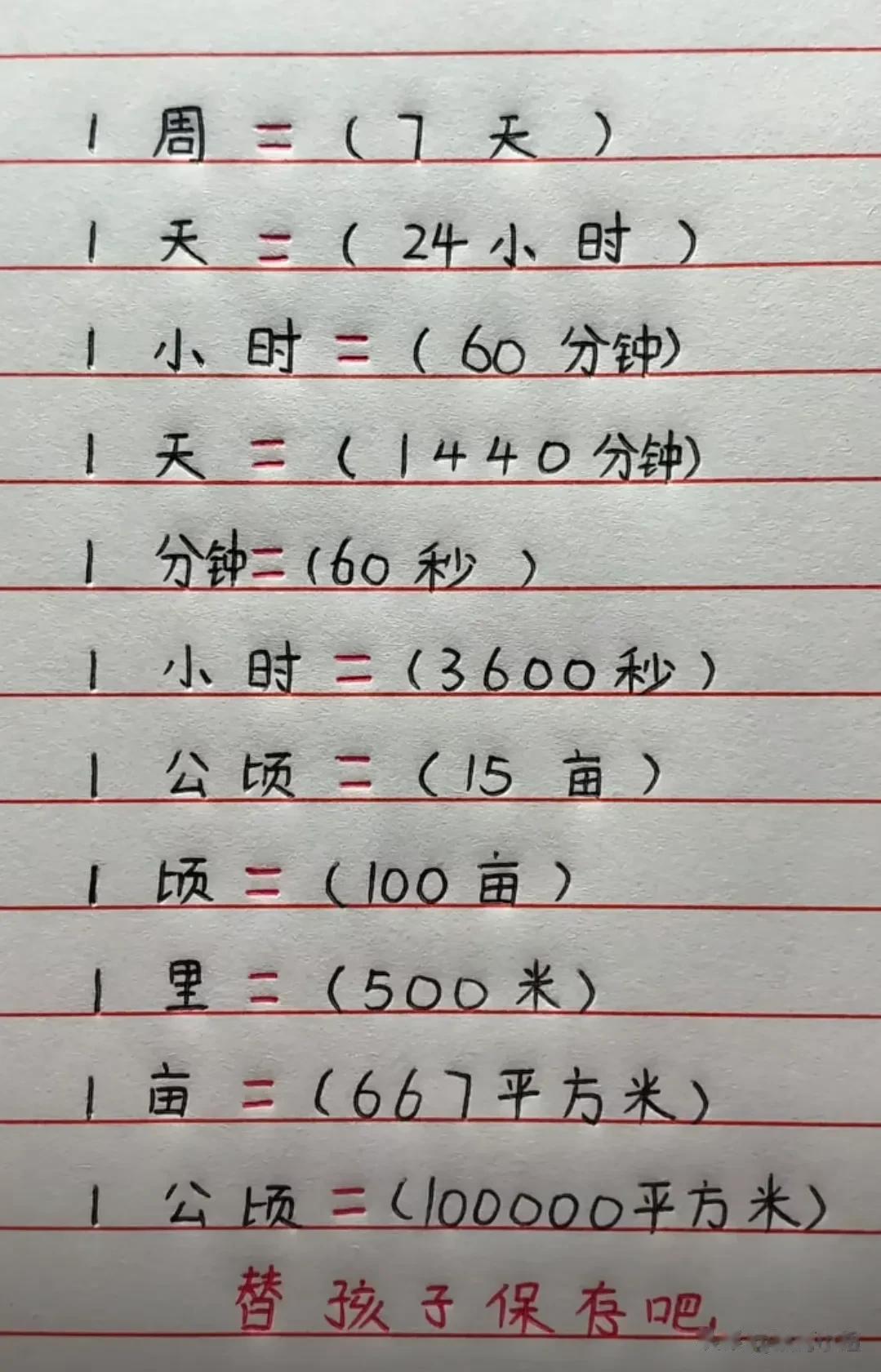 真的是太全了,替孩子收藏吧!没有比这更全的单位换算了, 有古今单位换算,也有现在常考常用的单位换算,还有100以内加减法计算技巧,看完之后,真是大涨知识,一定要让孩子知道,生活中能用上,考试也会考!