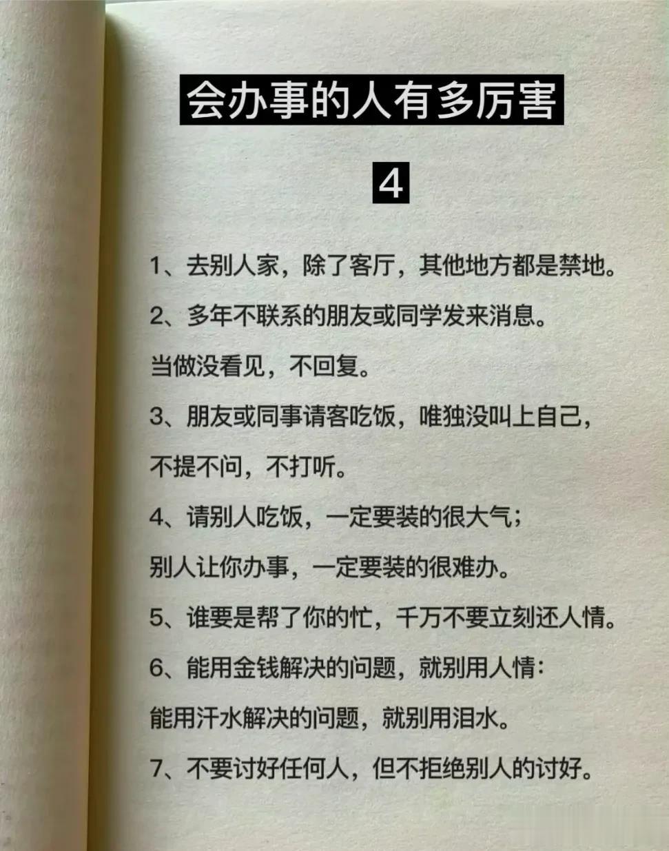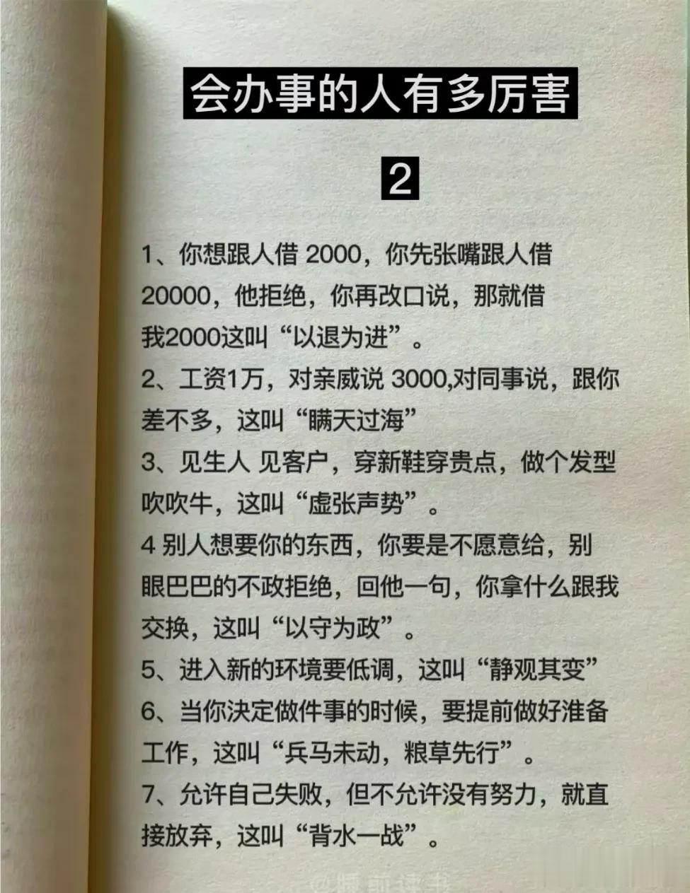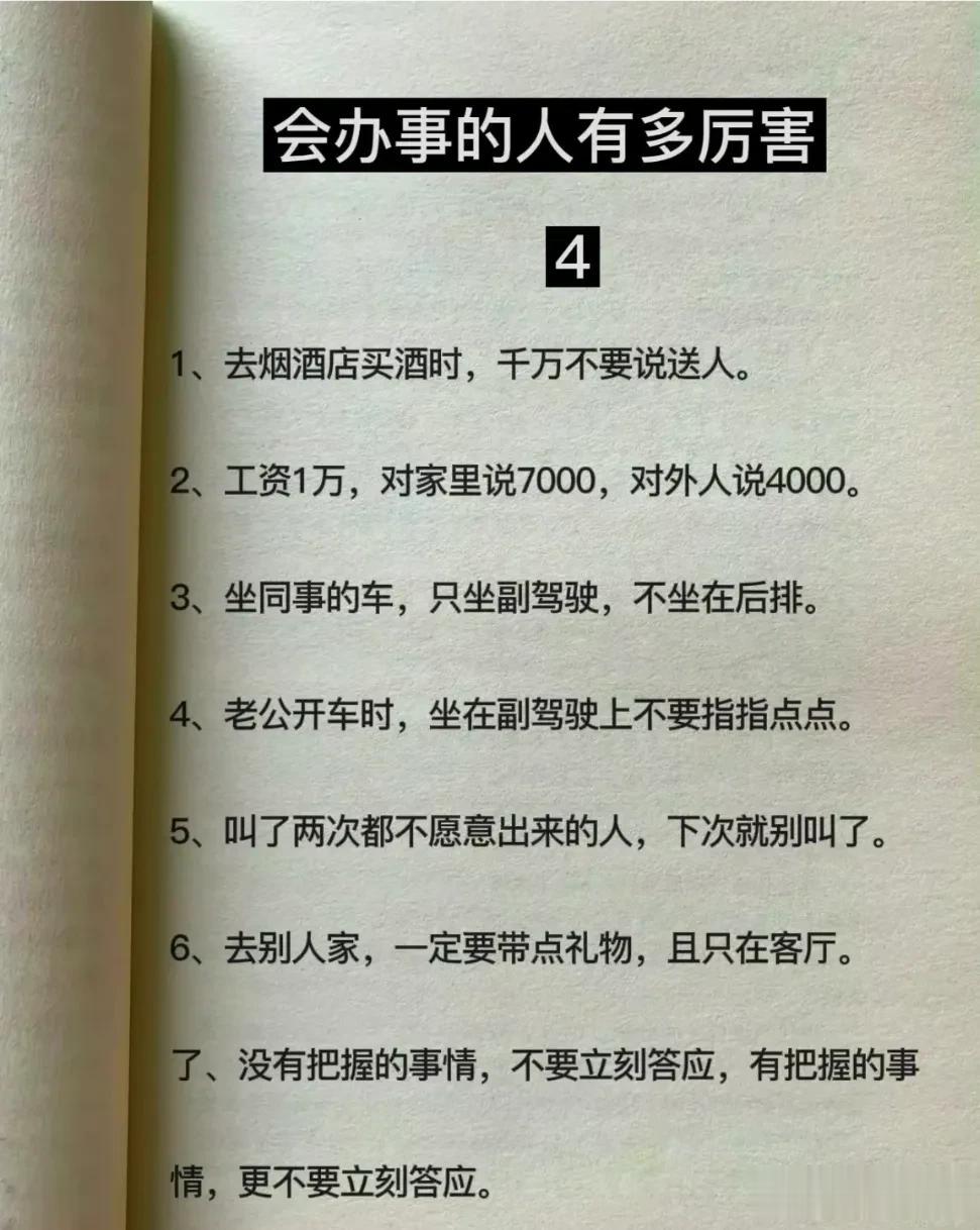 一位退休秘书前辈,告诉我的处事潜规则,没有难办的事,只有不会办事的人,成大事者要懂办事的艺术!牢记下面这76条办事的智慧,你就能快速在人群中脱颖而出,在事业上步步高升!赶紧学起来! 会办事是一种智慧,更是一门艺术。穷则变,变则通,学会变通来处事,就没有办不成的事。改变自己命运的法宝,就是会办事! 办事的艺术