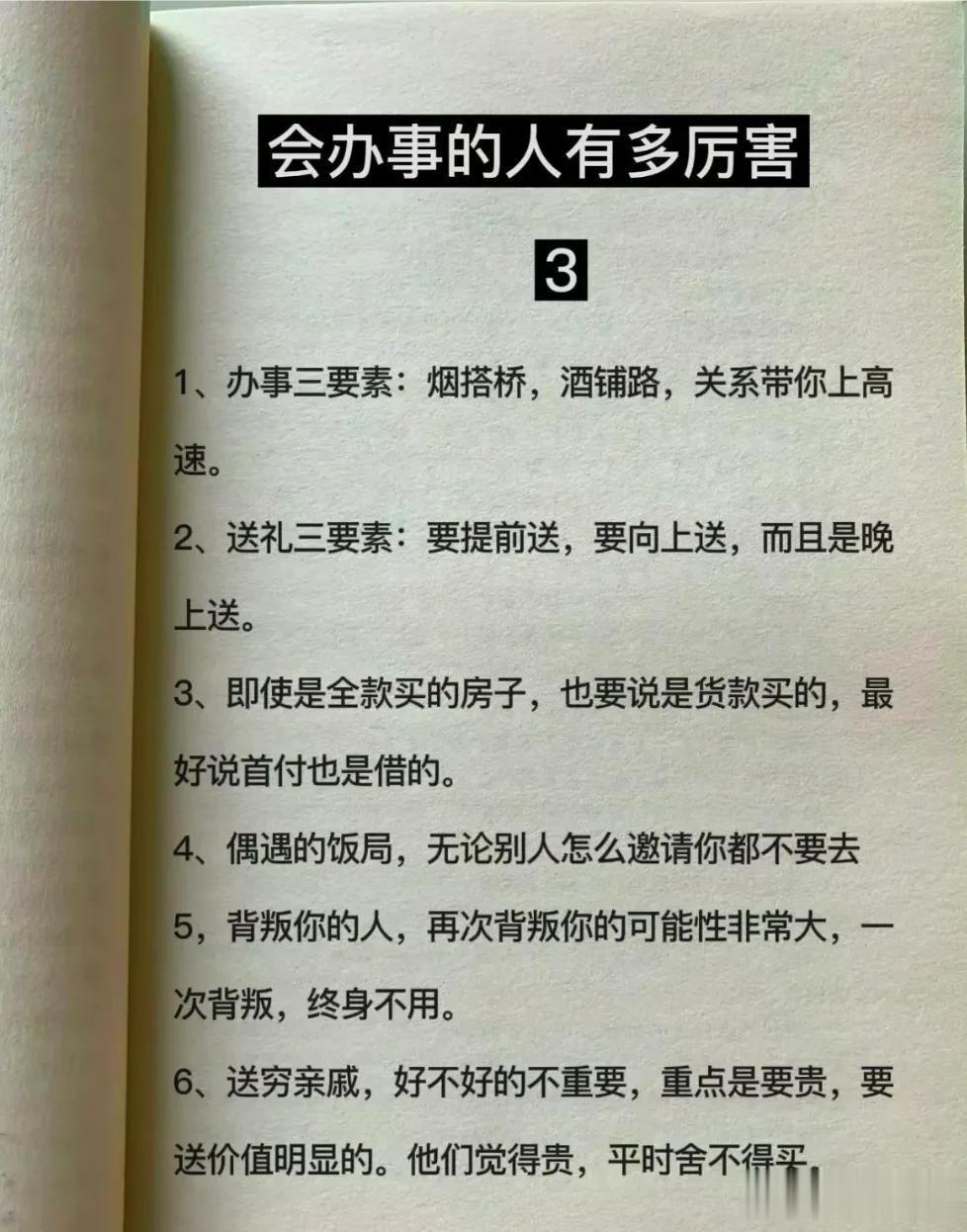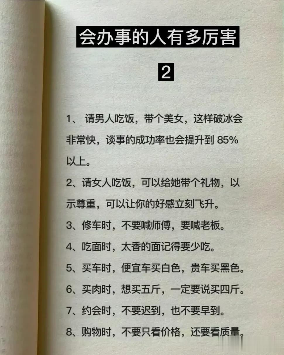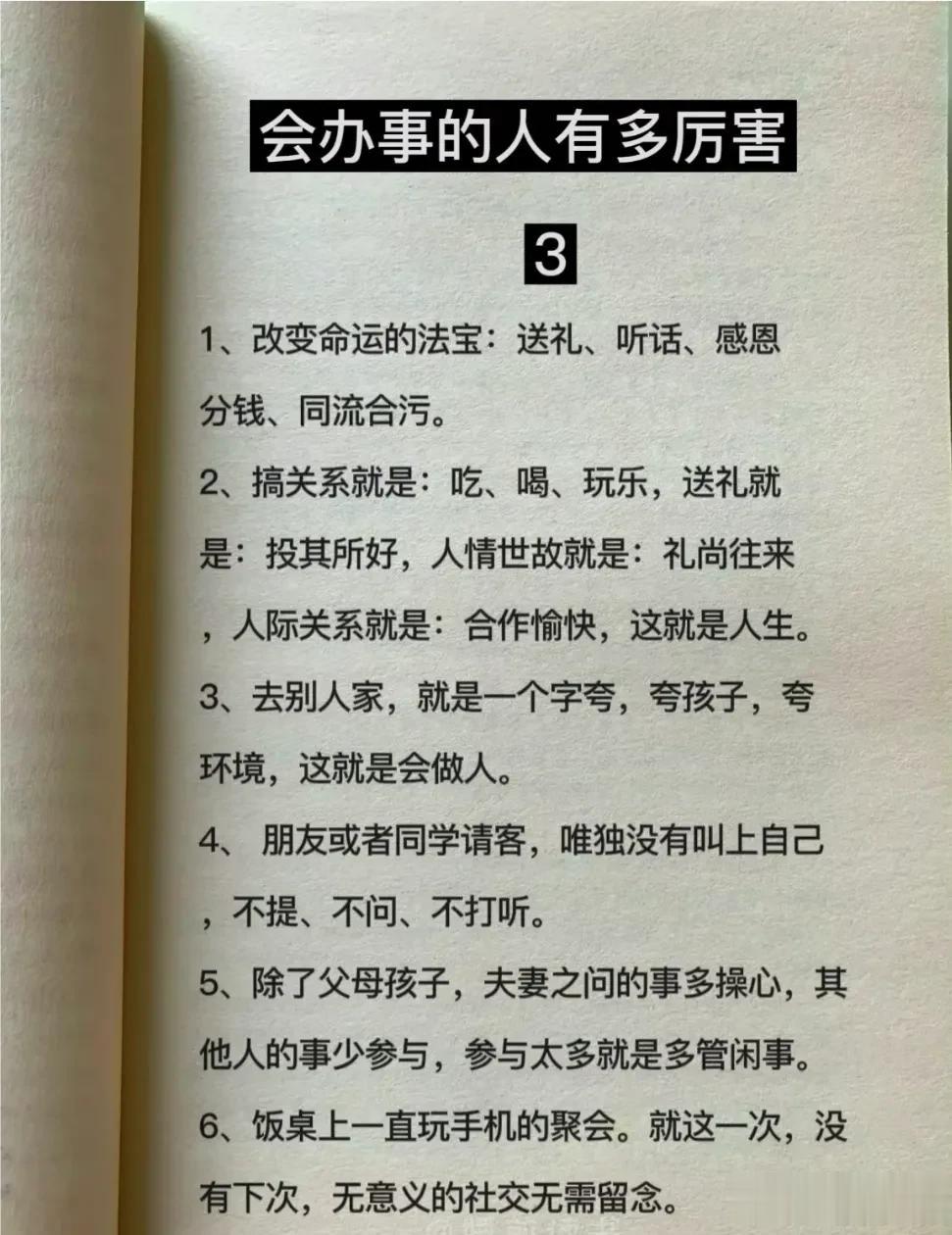 一位退休秘书前辈,告诉我的处事潜规则,没有难办的事,只有不会办事的人,成大事者要懂办事的艺术!牢记下面这76条办事的智慧,你就能快速在人群中脱颖而出,在事业上步步高升!赶紧学起来! 会办事是一种智慧,更是一门艺术。穷则变,变则通,学会变通来处事,就没有办不成的事。改变自己命运的法宝,就是会办事! 办事的艺术