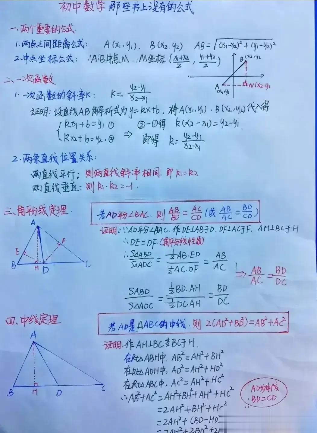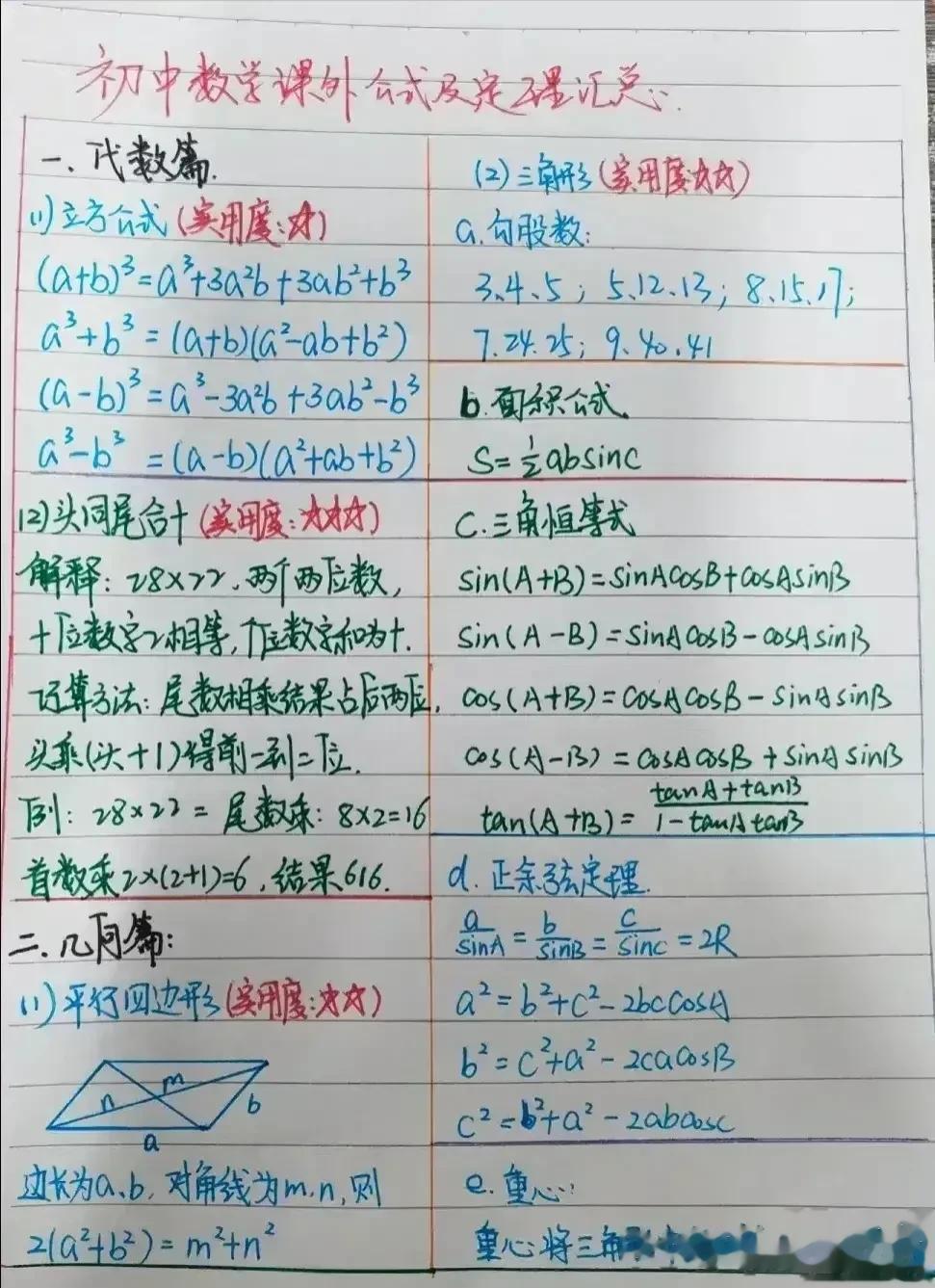 一位985学霸直言:初中数学之所以没有学好,就是没有把这18张数学知识点记下来,要是学会这些几何定理和计算内容!举一反三,勤加练习,绝对会让孩子的思维开拓很多!成绩起码不会低于95分。建议家长保存下来!特别是基础薄弱的,一定要熟练掌握!据说,那些数学学霸的思路这么敏捷,早就吃透这些解题妙招,解题又快又准! 初中数学解题妙招