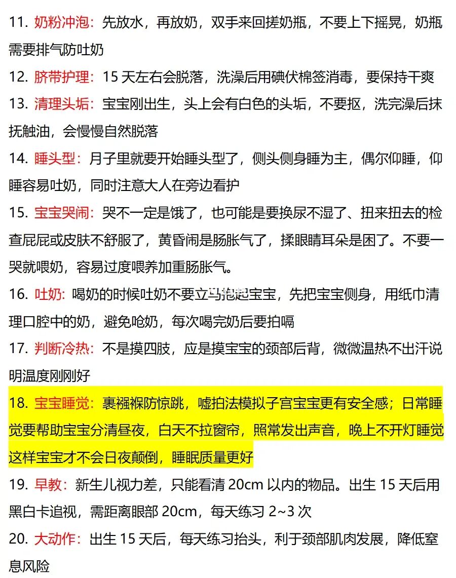 1⃣第1个月宝宝除了吃就是睡,偶尔清醒,需要帮宝宝分清白昼和夜晚,这样不会日夜颠倒
