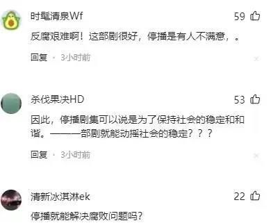 这一突然停播无疑引起了某些人的不满,显然他们不愿意看到电视公开曝光这些丑闻。连一部反腐影视作品都不敢放映,说明腐败问题已经相当严重,反腐败工作任重道远,需要背后有力量支持才能有力推进。