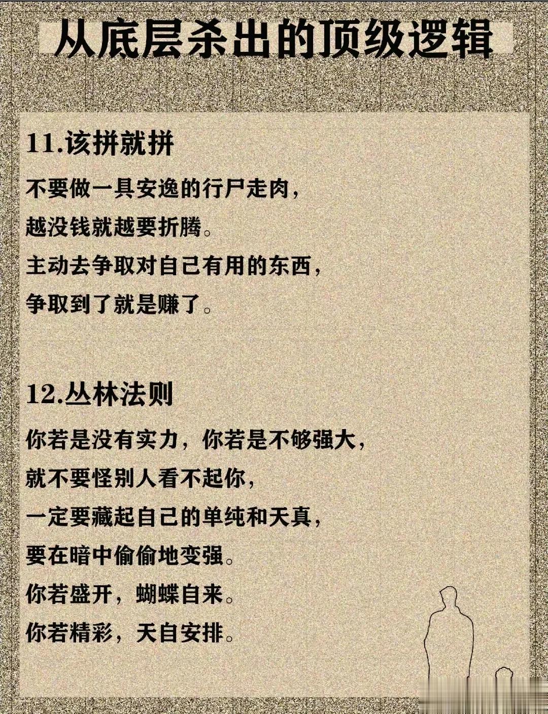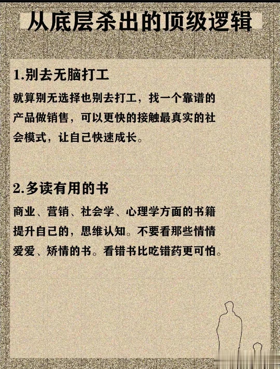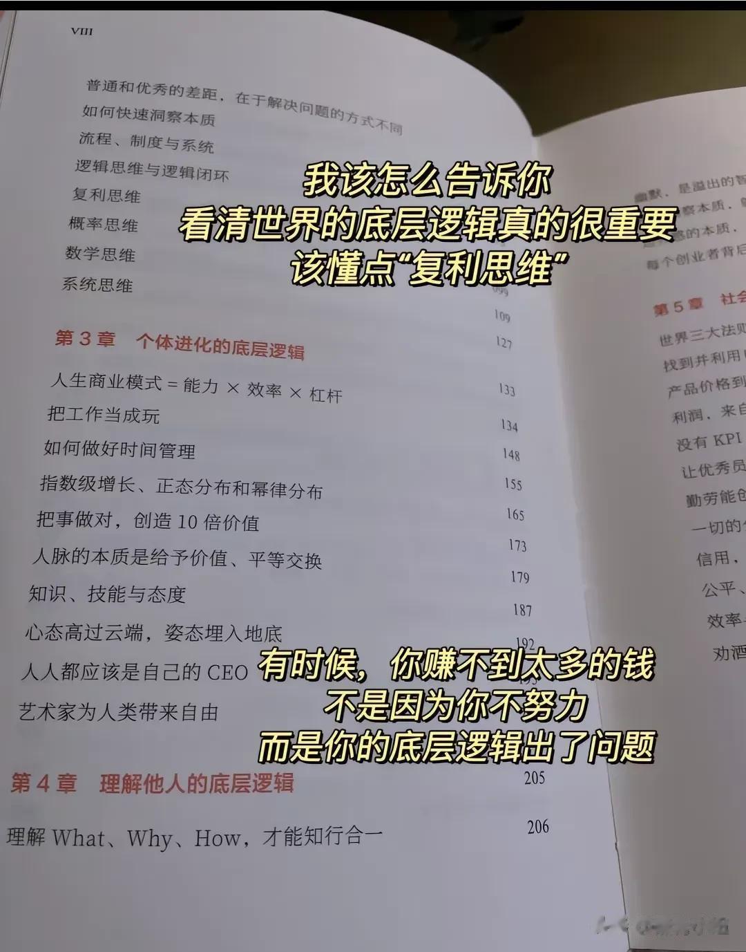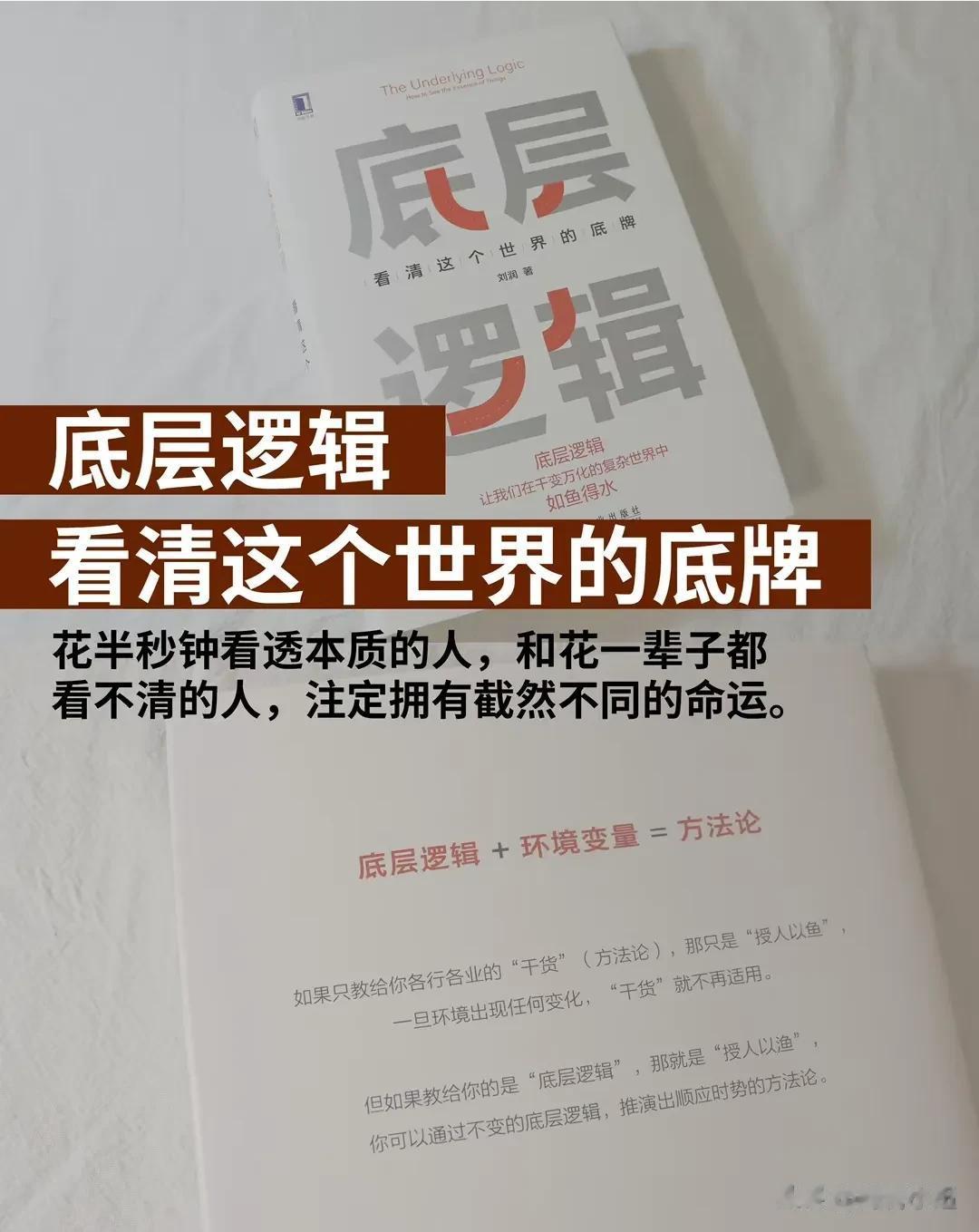 机会难得!!一位浙江商人对女儿的忠告:你赚不到太多的钱,不是因为你不努力,而是你的底层逻辑出了问题! 心理学家不会告诉你的底层逻辑,从底层杀出的顶级逻辑!赚钱需要具备底层逻辑、变通能力、认知水平,当你真正的懂得了《底层逻辑》赚钱其实很简单! 花半秒钟看透本质的人,和花一辈子都看不清的人,注定拥有截然不同的命运。 底层逻辑世界的底牌