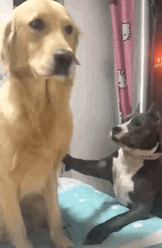 图1:小姐姐笑成这样,其实她内心很慌的。 图2:大金毛的脾气,是真的很好啊!