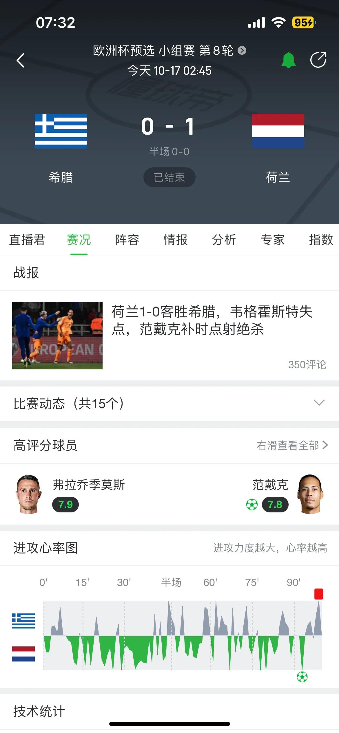 范戴克牛逼!顶住巨大的压力,在满场的闪光灯下最后时刻打进制胜点球!荷兰基本进欧洲杯了!真是有惊无险啊!