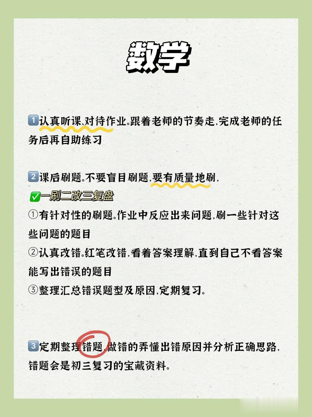 一位资深班主任总结的“尖子生”学习方法,坚持一年稳进重高,看看逆袭学霸从450到700要多努力!家长一定要告诉孩子,让孩子跟着尖子生的方式方法,轻松逆袭成学霸! 想要去更远的地方,就要更加的努力,想要考高分,方法就要用对,初中各科目的学习方法整理下方,按照这样的方法去学习,提高成绩事半功倍!!更多尖子生的学习方法下方链接走起!! 尖子生学习方法初中