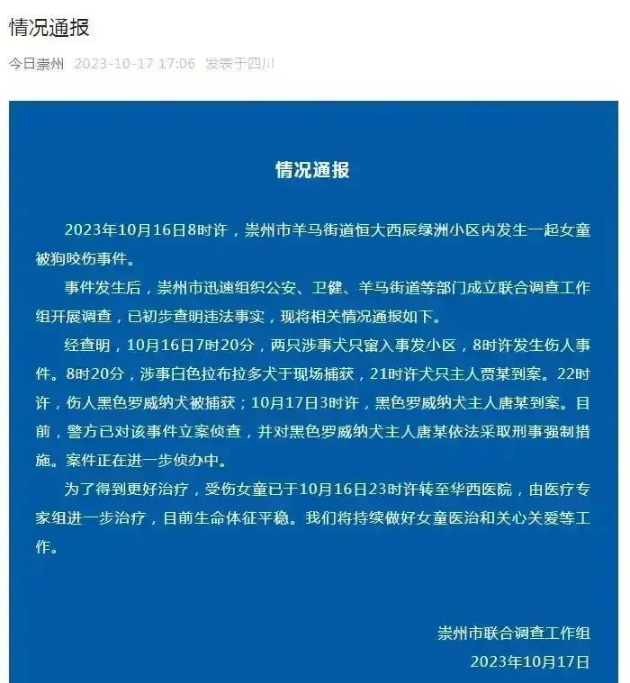 10月16日,一起大型犬恶性伤人事件,把城市规范养狗问题,再次推到了风口浪尖,目前已有很多城市发声,坚决维护城市大型犬的安全管理。