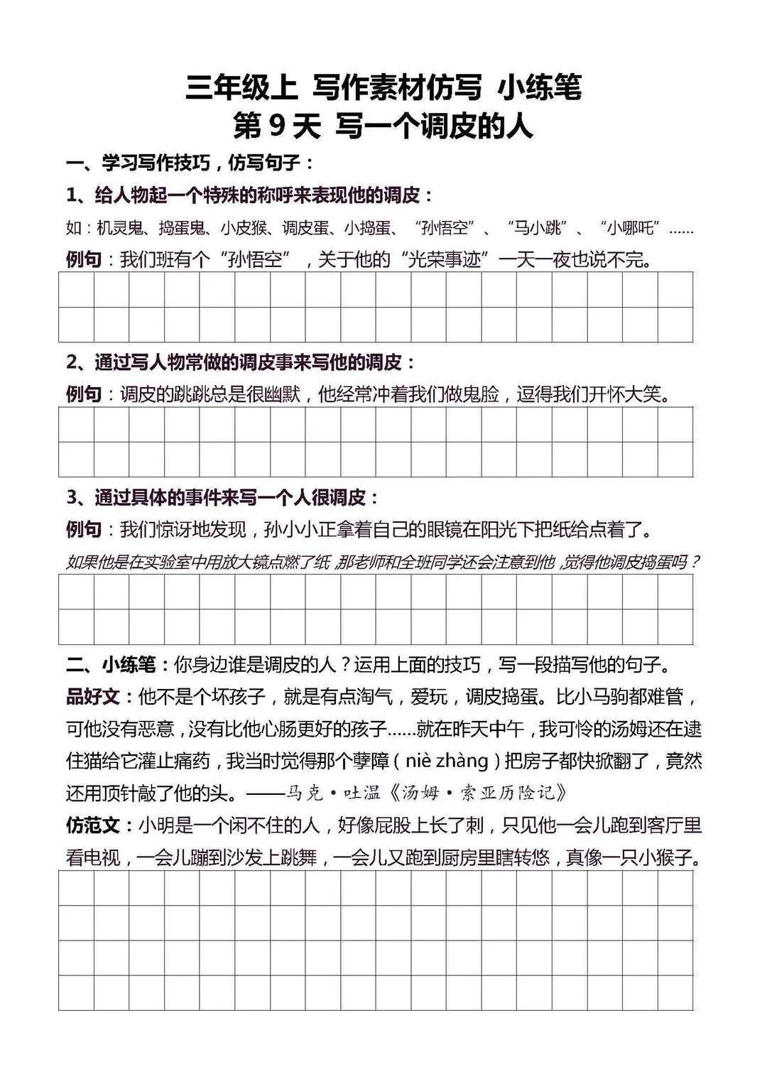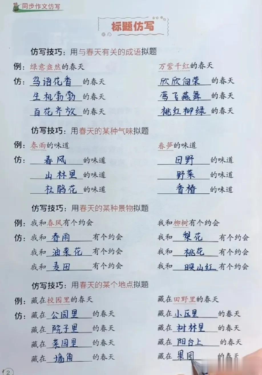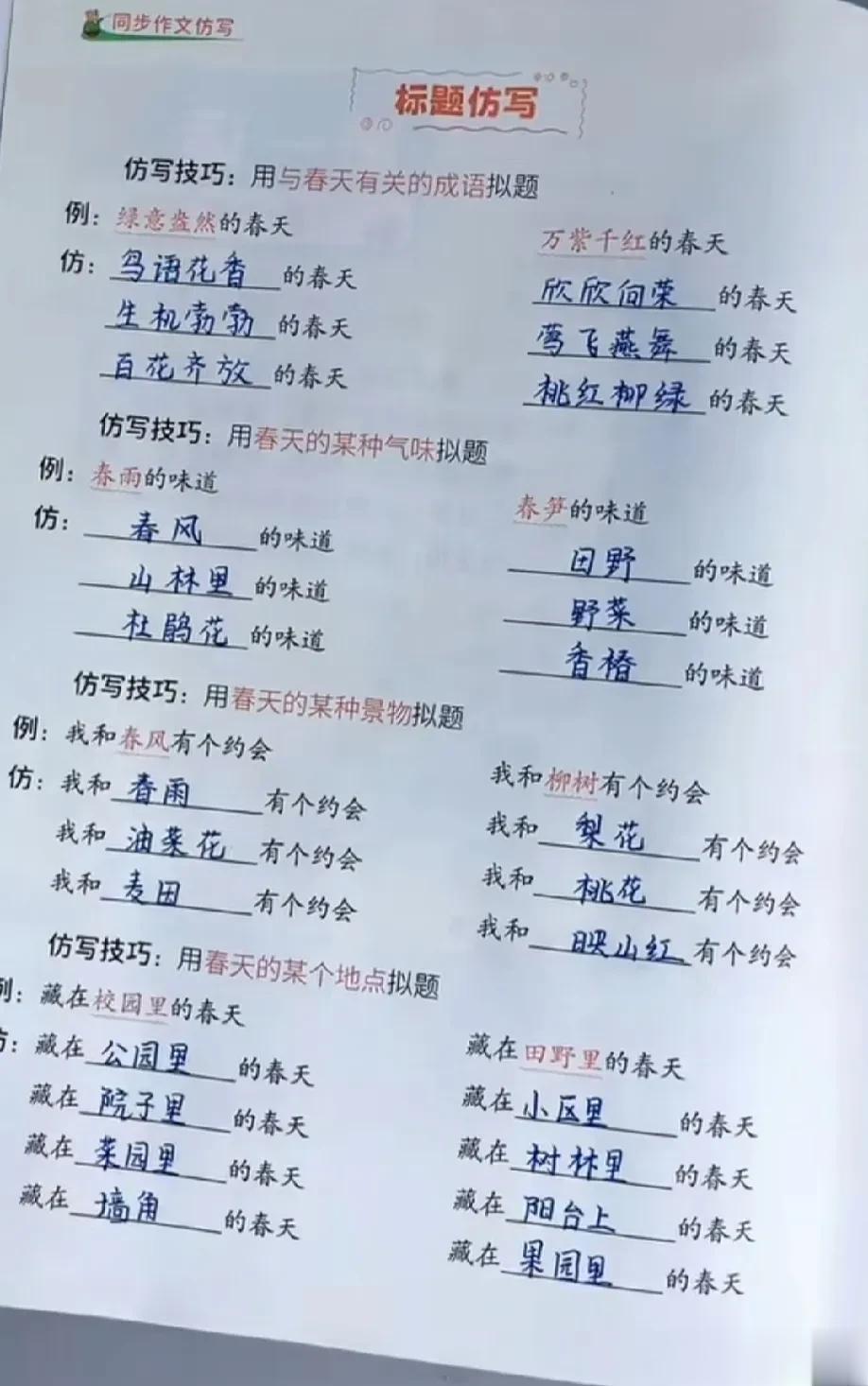 一位学霸妈妈直言:三年级女儿,从不会写作文到作文A+!无非就是多积累多仿写,拒绝无效摘抄,仿写才是有效积累!仿写多了,练多了,写作文自然就顺畅多了,太值得收藏借鉴了!作文写好了,丢分少,甚至不丢分,成绩自然绩突飞猛。 仿写是写作的起始,刚接触写作的孩子或者写作没思路的孩子,多利用仿写可以解决作文无从下笔的问题。它能培养孩子的写作能力和对语言的感受能力。就会发现语言生动形象了,表达情感也流畅了。 作文仿写写作方法技巧