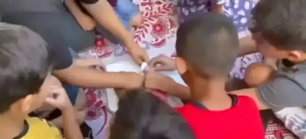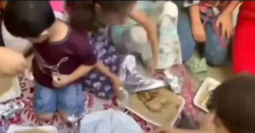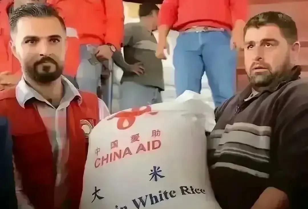 看到了吗? 中国的援助物资已经被送到了加沙民众手里,孩子们已经迫不及待地打开自热手抓饭了,对他们来说,这已经很奢侈了。 你看那两位大哥,两人抬一袋中国大米,这可是50斤重的。 沉甸甸的,满满的,都是中国情啊。