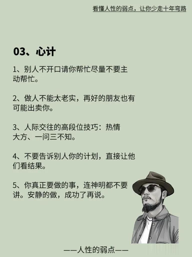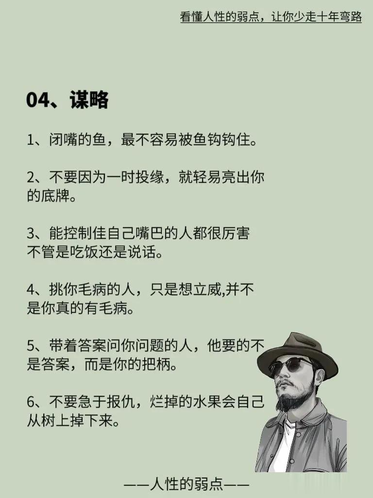万万没想到,真正的高手,都是拿捏人性的,看透人性弱点的人,懂人性、有智慧、有谋略、有心计、有格局,终将不同凡响,人生少走十年弯路!赶紧学起来! 处理人际关系,真正厉害的人,往往能找准“人性的弱点”,才能有针对性地改变自己,适应环境,才能掌握自己的人生。 人性的弱点