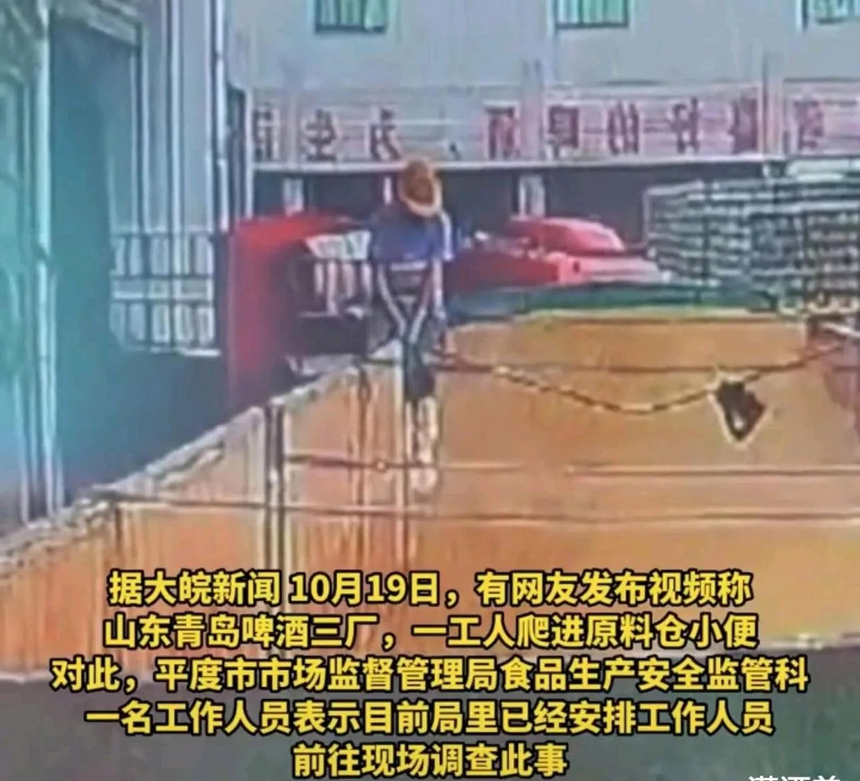 史上最贵的尿撒出来了! 青岛啤酒损失可能上10亿 10月20日,青岛啤酒三厂被曝一工人在原料仓小便。从曝光的视频中看到,这名工人熟练的进行小便操作,甚至尿入了原料仓中。 他这一泡尿不当仅,有可能尿出史上最贵的尿。 下周一股市有可能造成近10亿元的损失。至于损失多少钱,我们等下周一见! 食品安全无小事,职业道德建设需要加强。 估计这两天青岛啤酒厂要进行一轮职业道德整顿了!