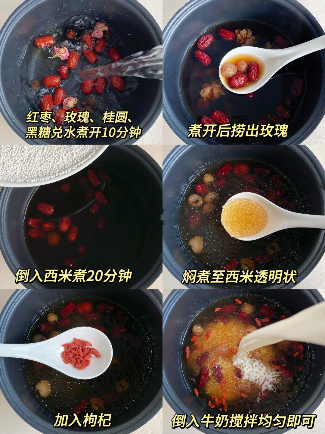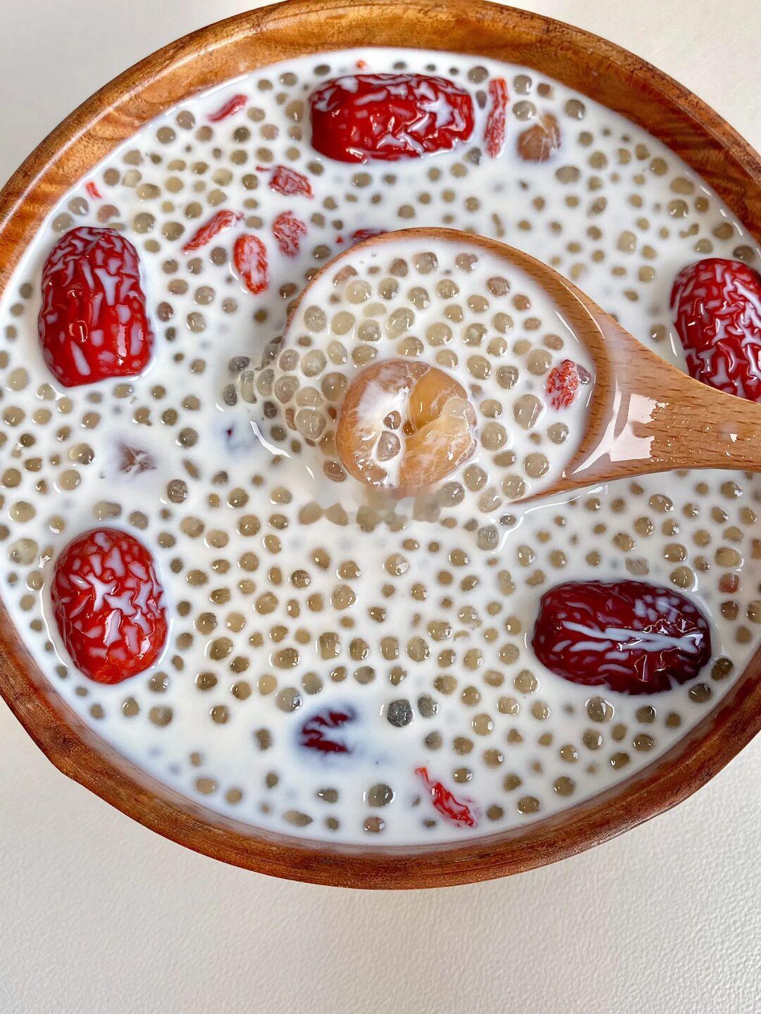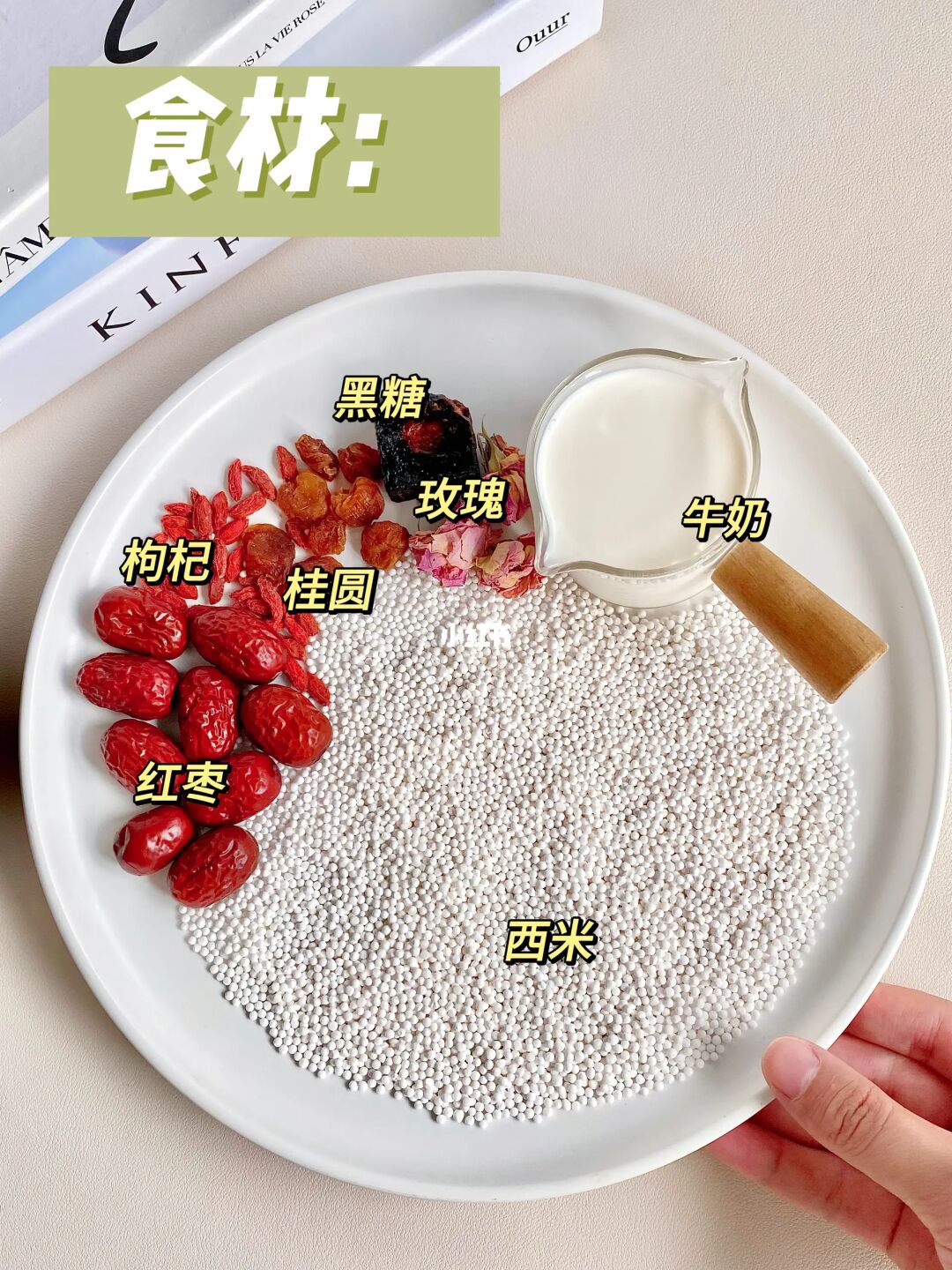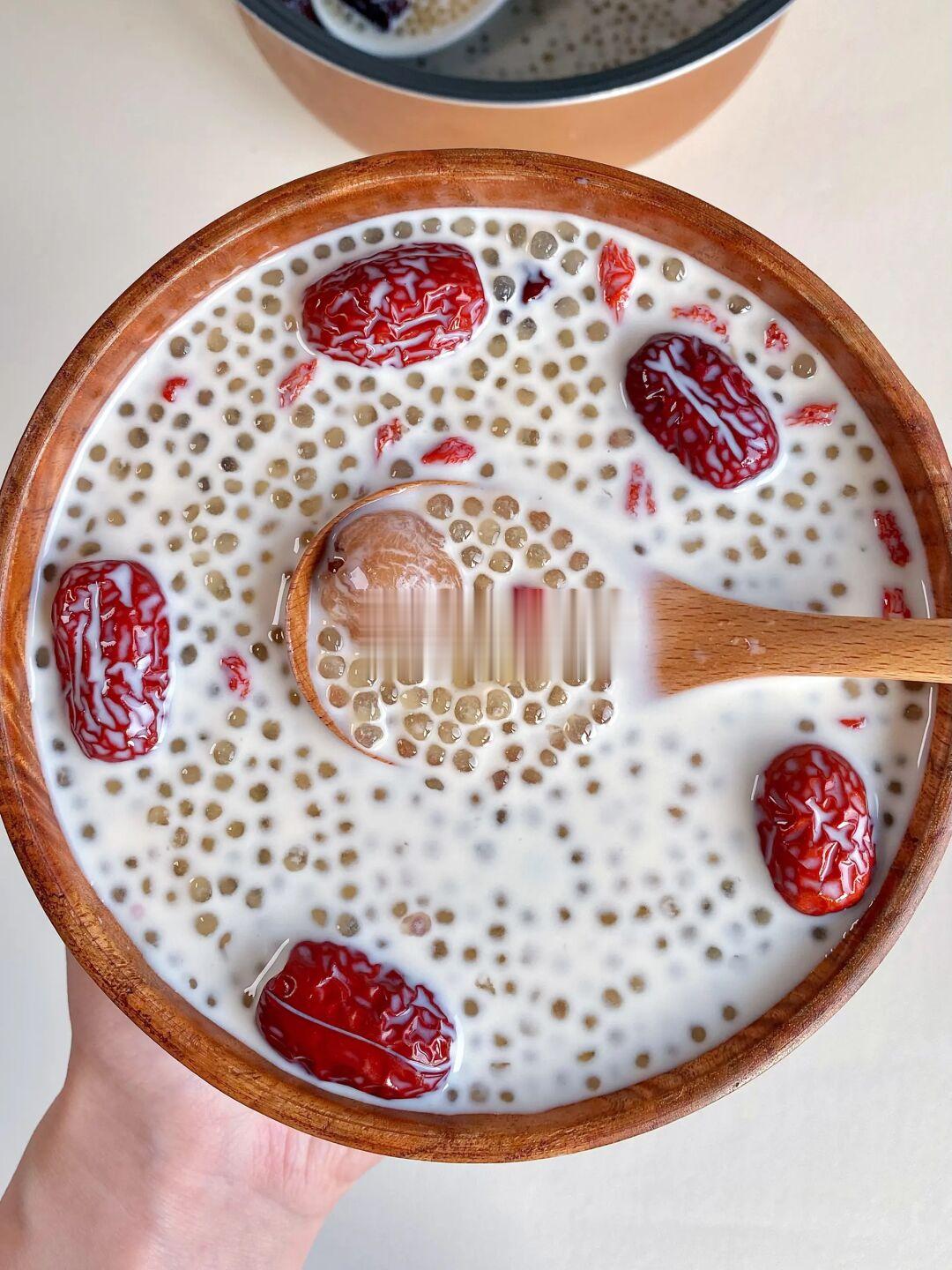 红枣桂圆西米露!!女孩子喝真滴很好!! 因为我老是熬夜…😭我妈经常煮给我喝! 每周坚持一碗!胜过10张面膜!! 奶香贼浓郁!口感爆赞👍!营养又健康! 📝食材:红枣、枸杞、桂圆、玫瑰、黑糖、西米、牛奶 🥣做法:红枣、桂圆、玫瑰和黑糖放入锅中加清水煮开10分钟后捞出玫瑰!倒入西米煮20分钟!焖煮至透明,再加入牛奶搅拌煮开即可! 都是对女孩子气🩸很友好的食材!生理期就馋这一口,比奶茶还要好喝!喝完暖乎乎的,元气满满!![派对R]