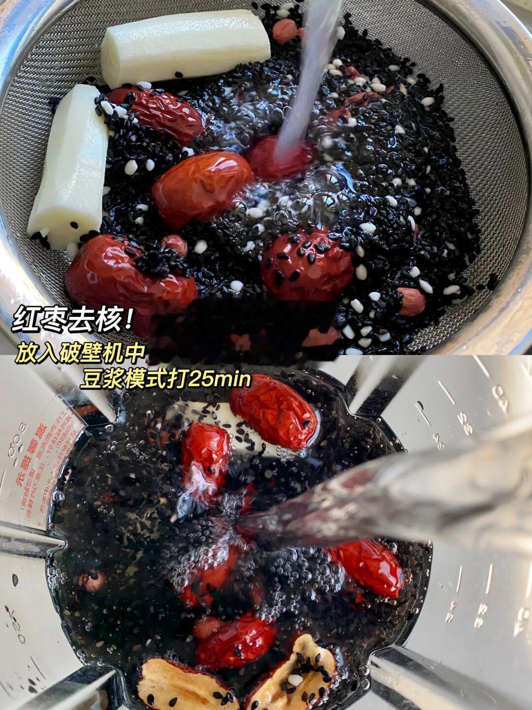 这这这!这!不就是我梦中的黑芝麻糊嘛! 跟冲泡的完全不一样哦!香香甜甜的~ 因为我老是熬夜😭…我妈妈就经常做这个黑芝麻糊给我当早餐!香浓顺滑!贼香! 经常熬夜👩🦲的姐妹赶紧喝起来… 📝食材:黑芝麻60g、糯米20g、花生10g、红枣5颗、山药2小节 ✔️做法:食材冲洗干净放入破壁机,倒入600ml清水,豆浆模式打25min即可 一口醇香浓郁!早上来一碗比啥都顶哦!! 我妈还放了山药一起,对脾胃也很友好哦!!