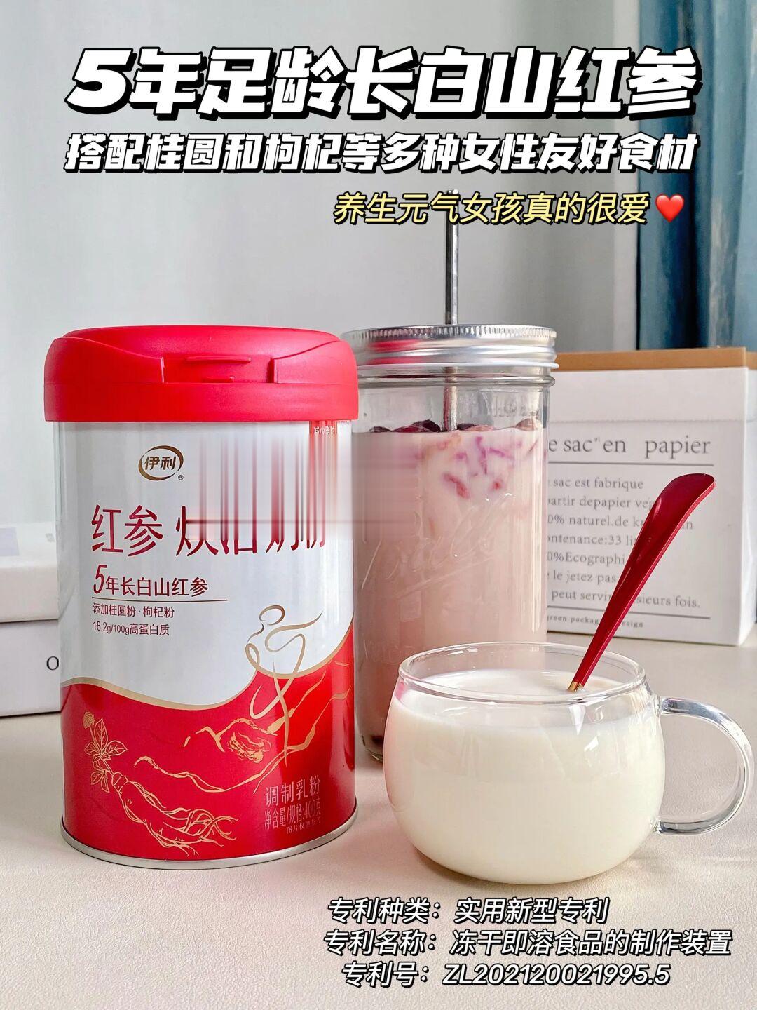 关键材料选的是伊利轻慕红参奶粉!里面添加了5年足龄长白山红参,配合专利技术,z大程度保持红参的营养和功效,对女孩子状态回春不要泰棒!!