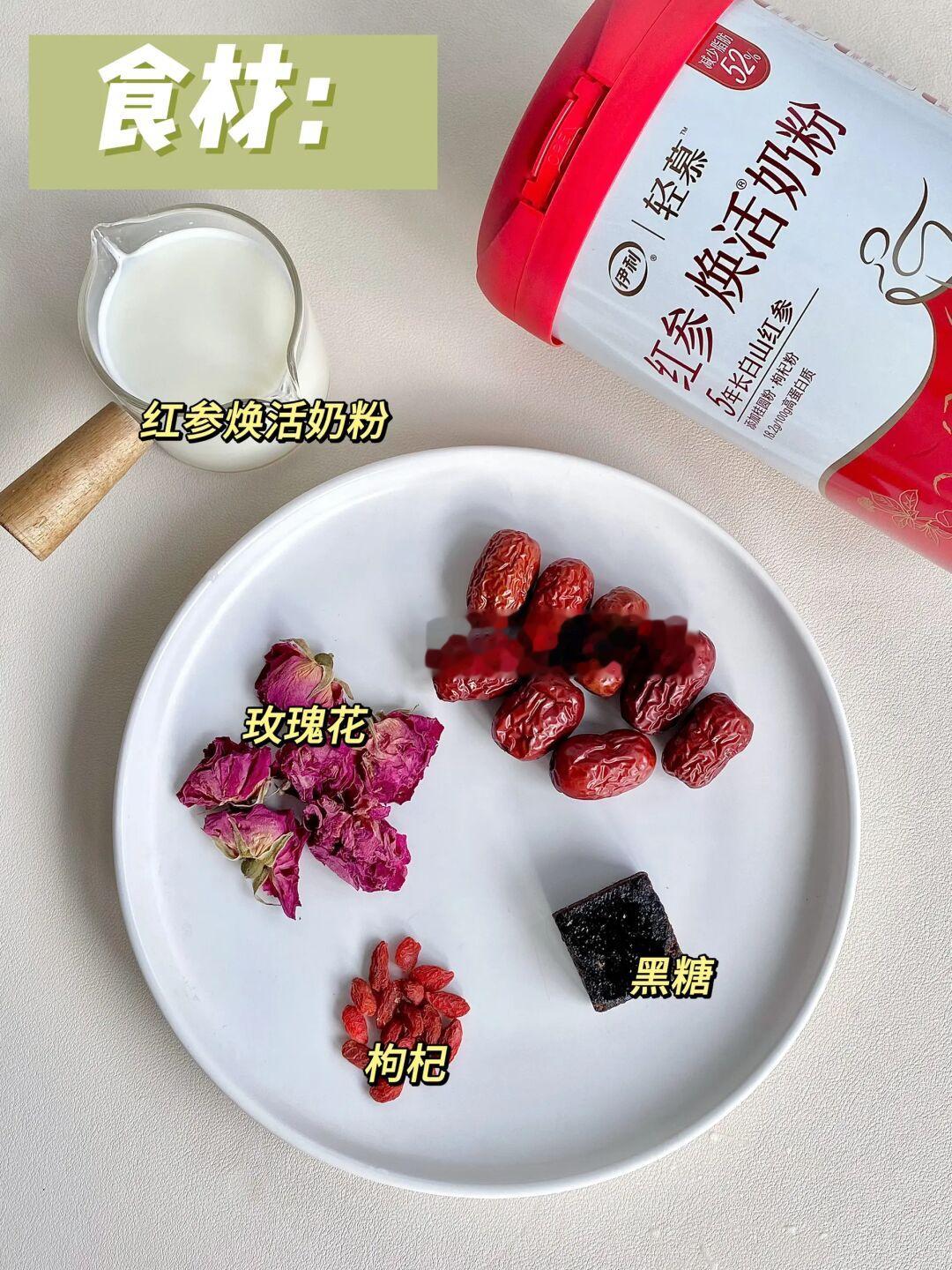 📝食材:红参奶粉、红枣、枸杞、玫瑰、红糖、