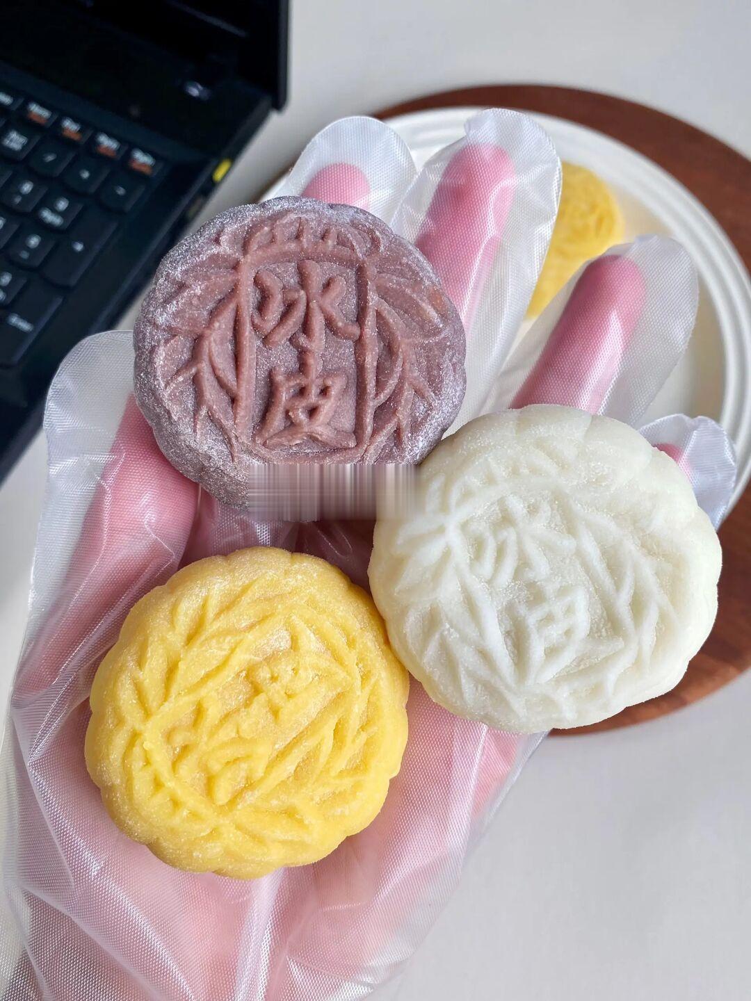 免烘培工艺!炊蒸熟的,健康少油!放冰箱冷藏后吃,凉凉糯糯的,吃着一点也不甜腻!馅中套馅…每个都好有层次感!三个口味我都爱吃,老人小孩吃了也不担心上🔥