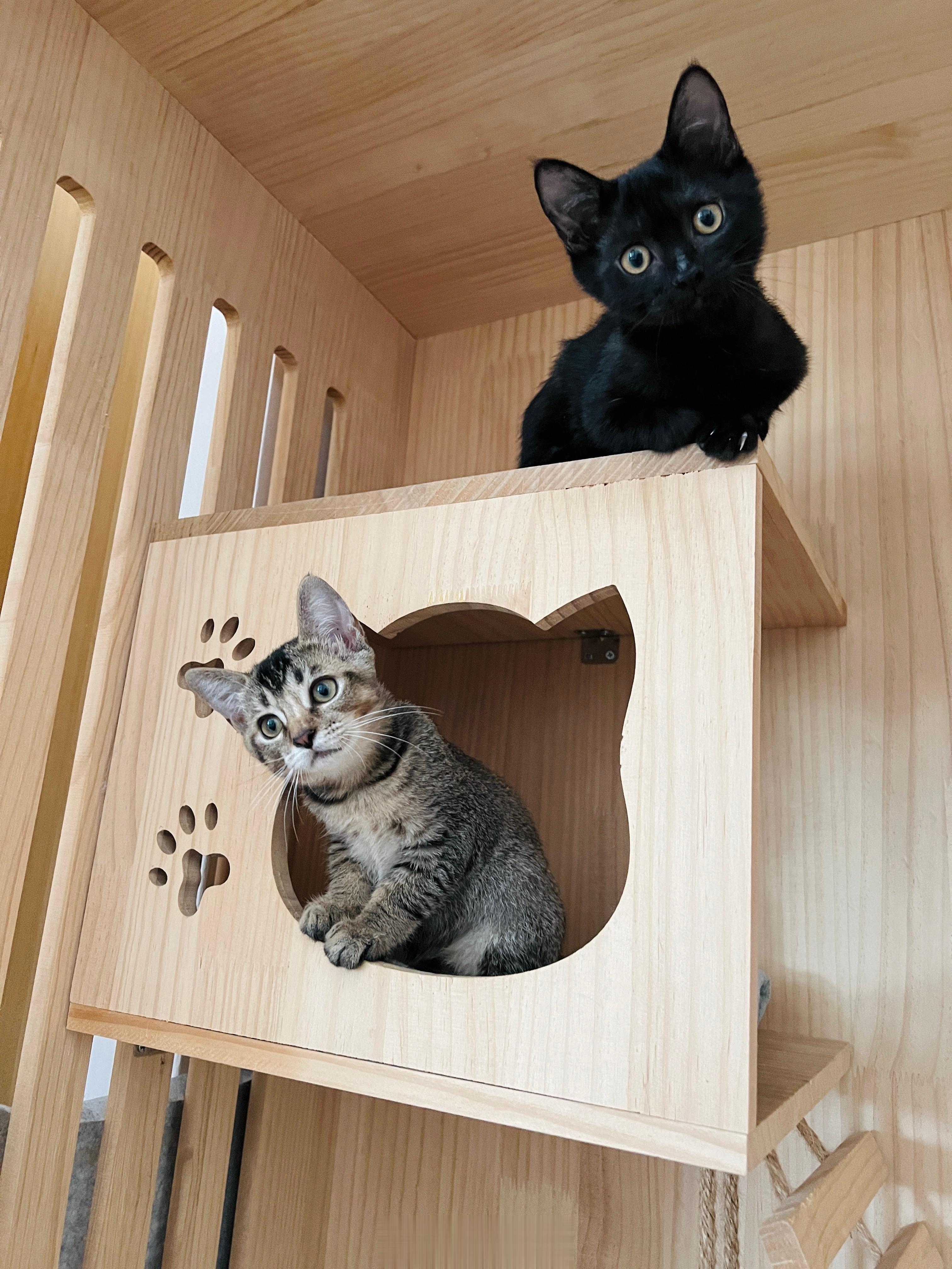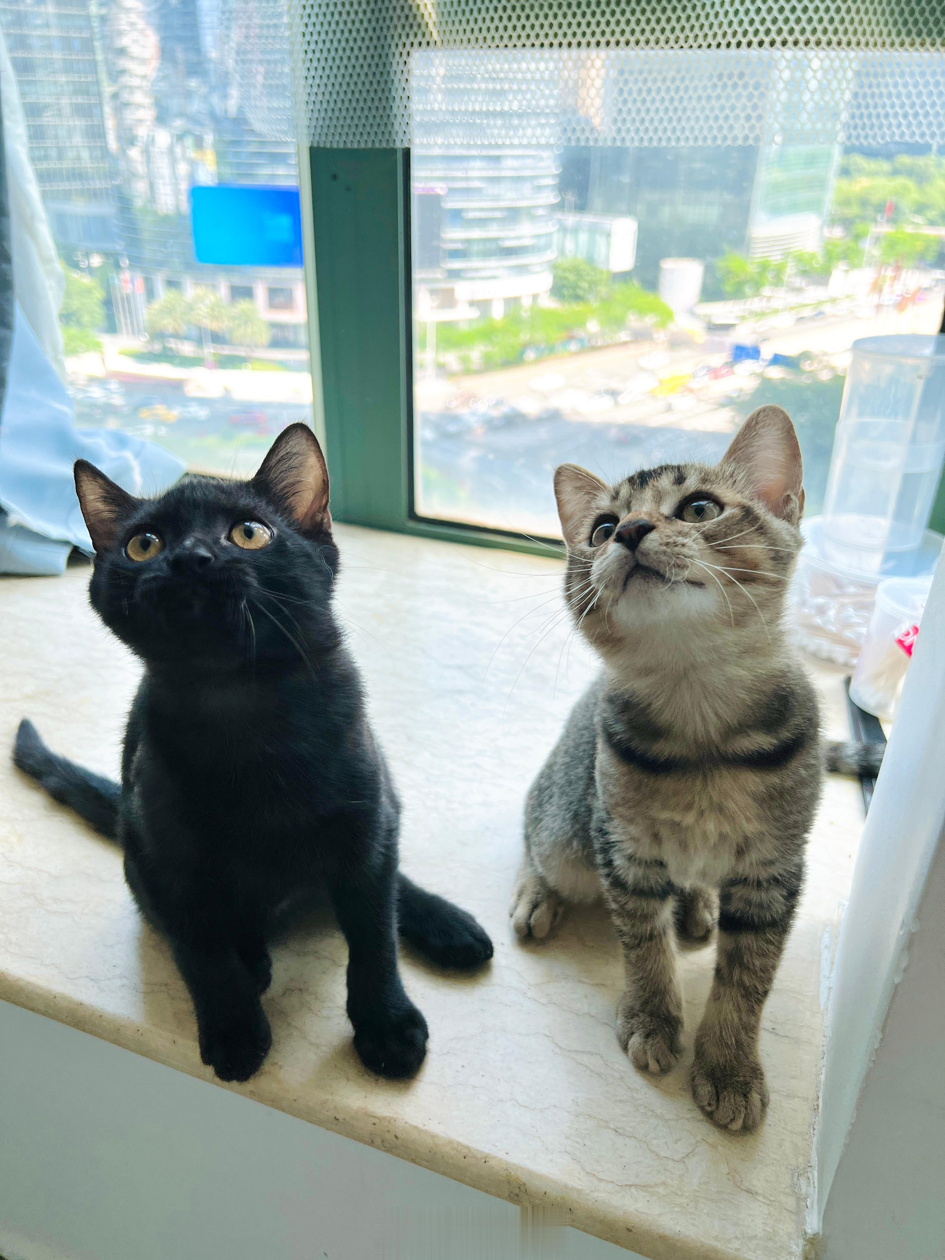 兩個半月大的小兄妹活力旺盛、喜欢环抱打闹、玩逗猫棒,个性亲人、抱着就噜呼,寻找领养家庭中,有意者敬请内洽😬