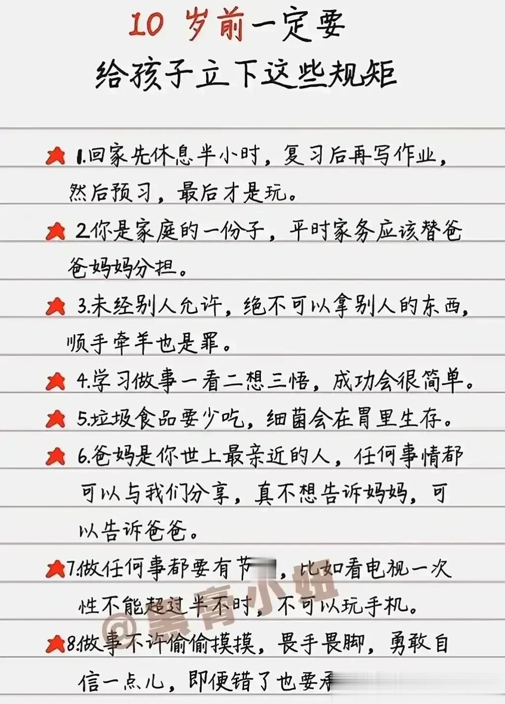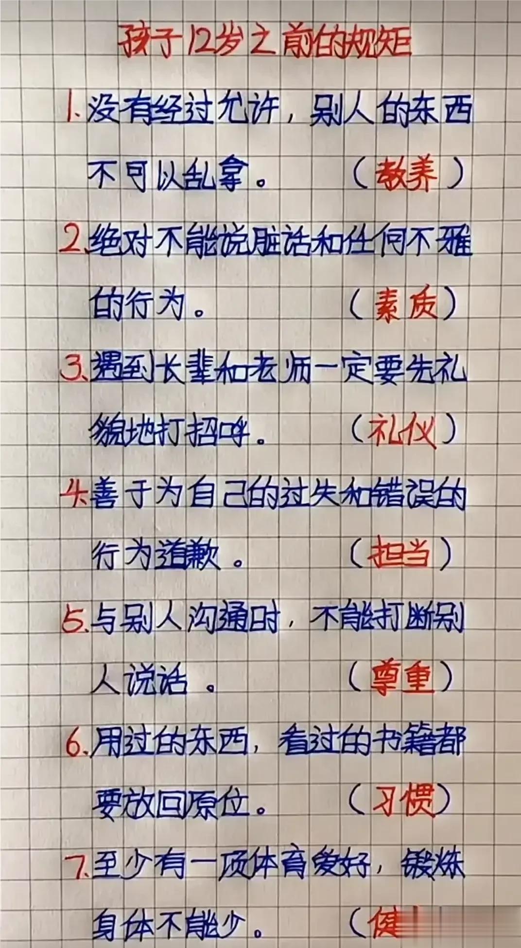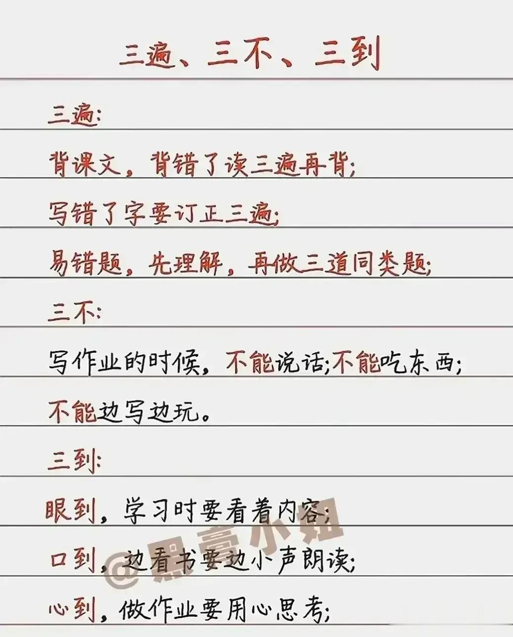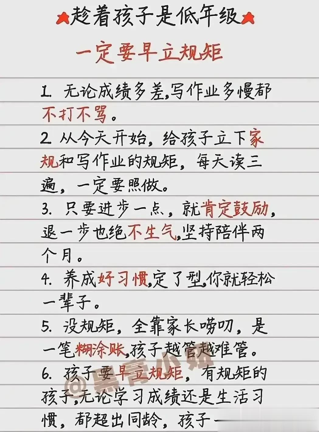 一位退休的老校长直言:要想成绩好,一定要从小养成好习惯!写作业要做“三个三”,孩子成绩一定好!原来那些优秀的孩子,都是如此养成的。没事一定要让孩子摘抄下来,看一看,记一记,孩子才能形成良好的生活习惯和学习习惯,规矩学的越早,孩子就越优秀越自律,长大都比同龄孩子更有出息! 好习惯自律打卡