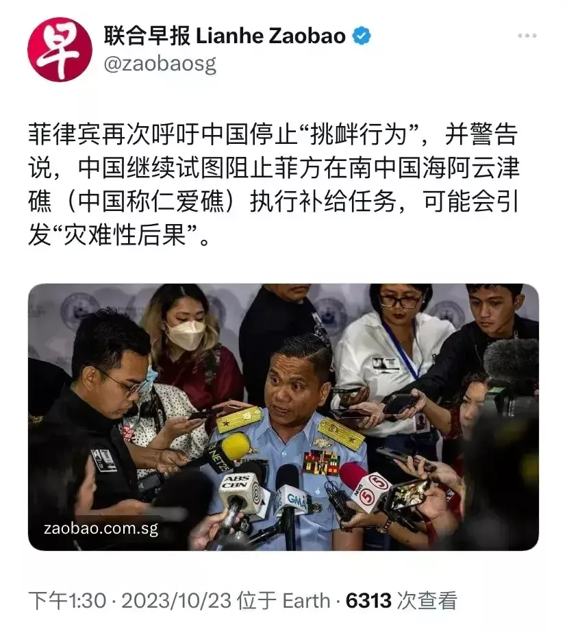 美国:我谴责中国拦截菲律宾舰船! 加拿大:我谴责中国拦截菲律宾舰船! 接着,荷兰及一些欧盟国家也进行了类似的表态,出来帮腔。 美国驻菲律宾大使近日声称:“美国谴责中国最新破坏菲律宾向仁爱礁浅滩合法补给的行为,这将置菲律宾士兵的生命于风险之中!”。与之形成鲜明对比的是,美国对菲律宾连续两次“恶意碰瓷”,企图制造事端,威胁中方船只和船员的安全,“置中国船员的生命于风险之中”的行径视而不见,只字不提。 见自己有这么多支持者,菲律宾更是狂妄的声称:中国再阻拦、将造成灾难性后果……。可我国都拦截了不知多少次了,也没见发生什么灾难性的后果,区区菲律宾,又有什么能力造成灾难性的后果!