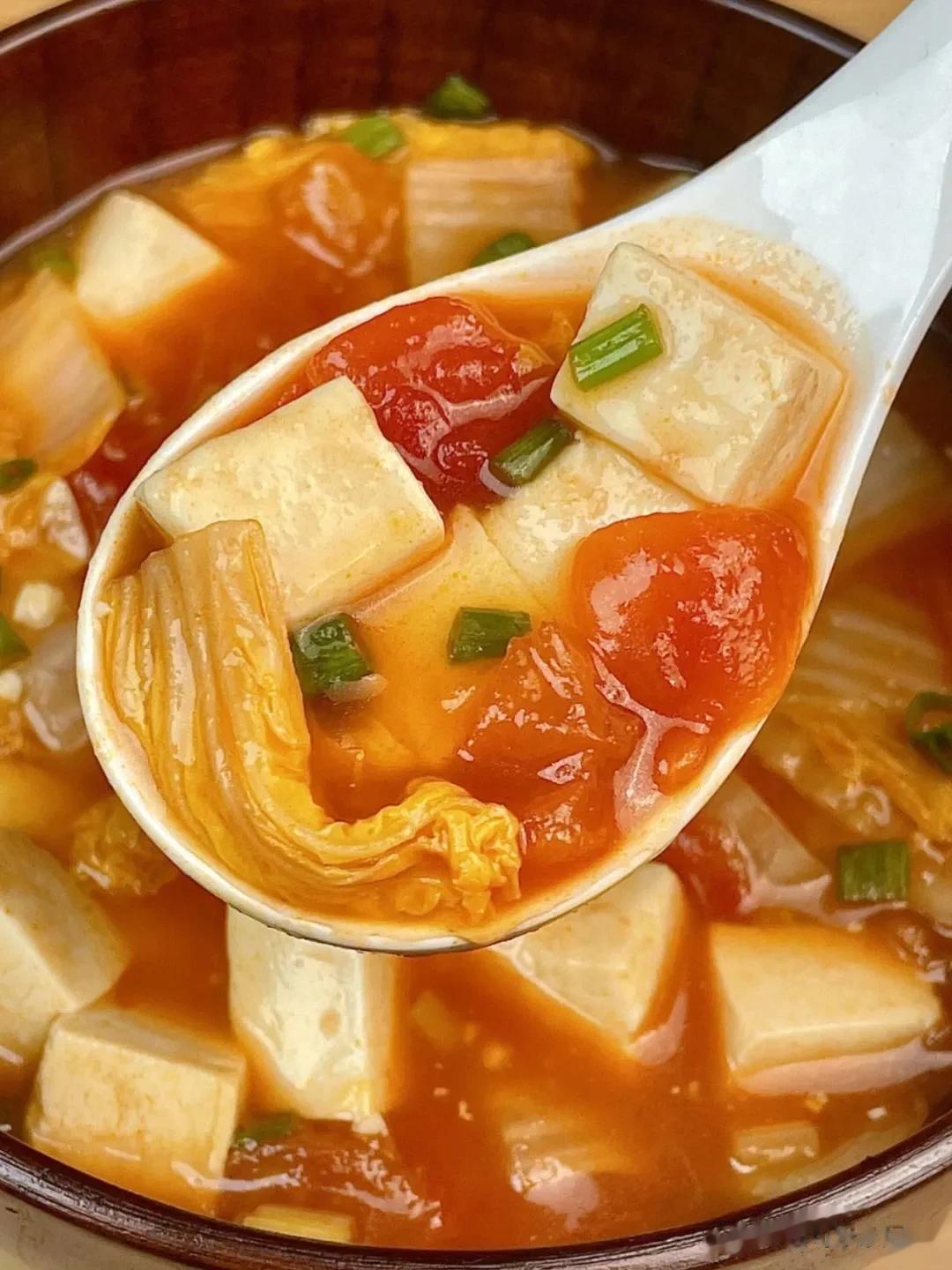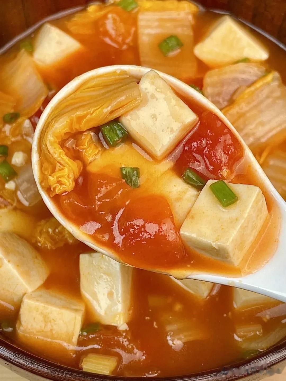 #记录我的2023# #我家餐桌入秋了# 食材:番茄、豆腐 做法: 1.豆腐洗净、切块;番茄洗净、去皮、切块。 2.锅中放适量油,倒入番茄翻炒,炒软后倒入适量清水烧开,放入豆腐块煮一会儿,最后加适量盐搅拌均匀即可。