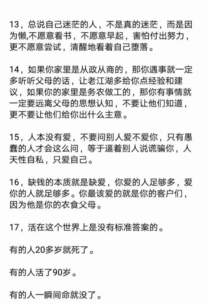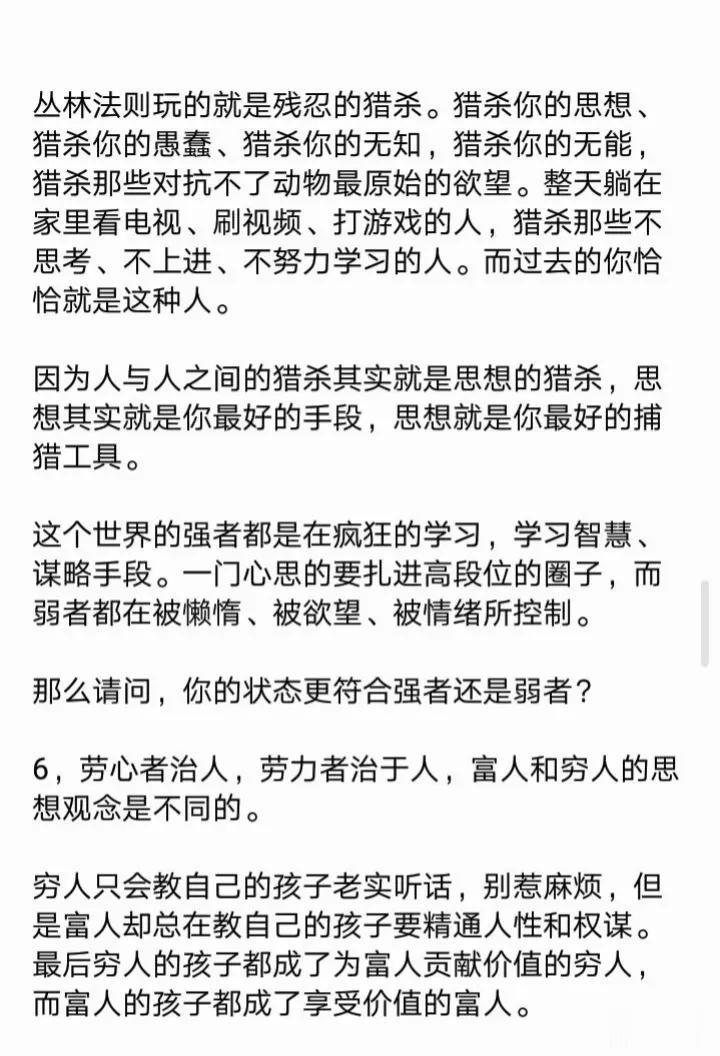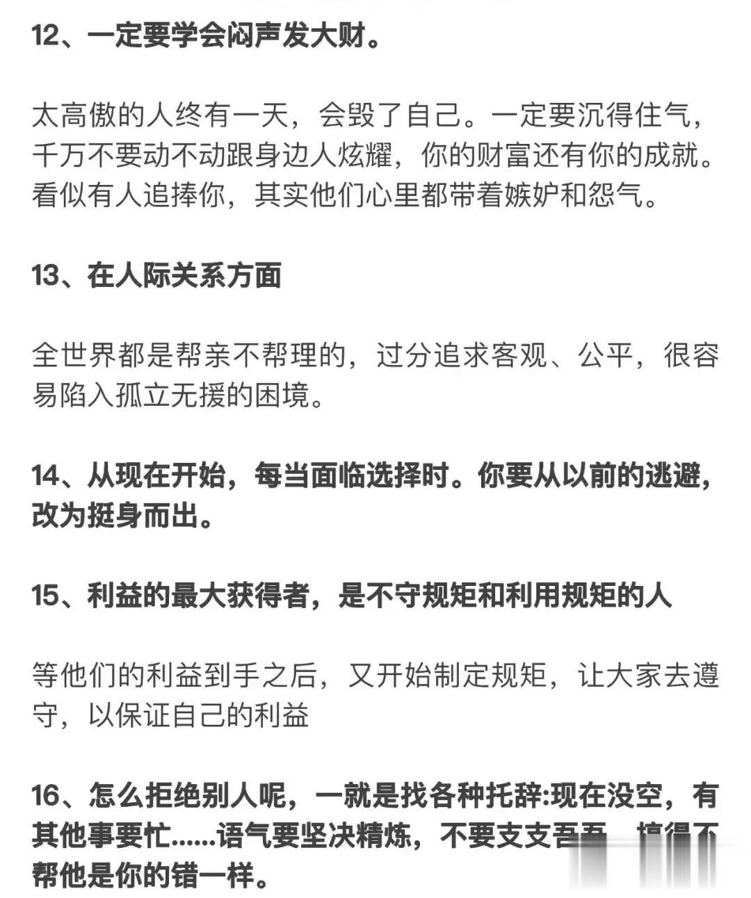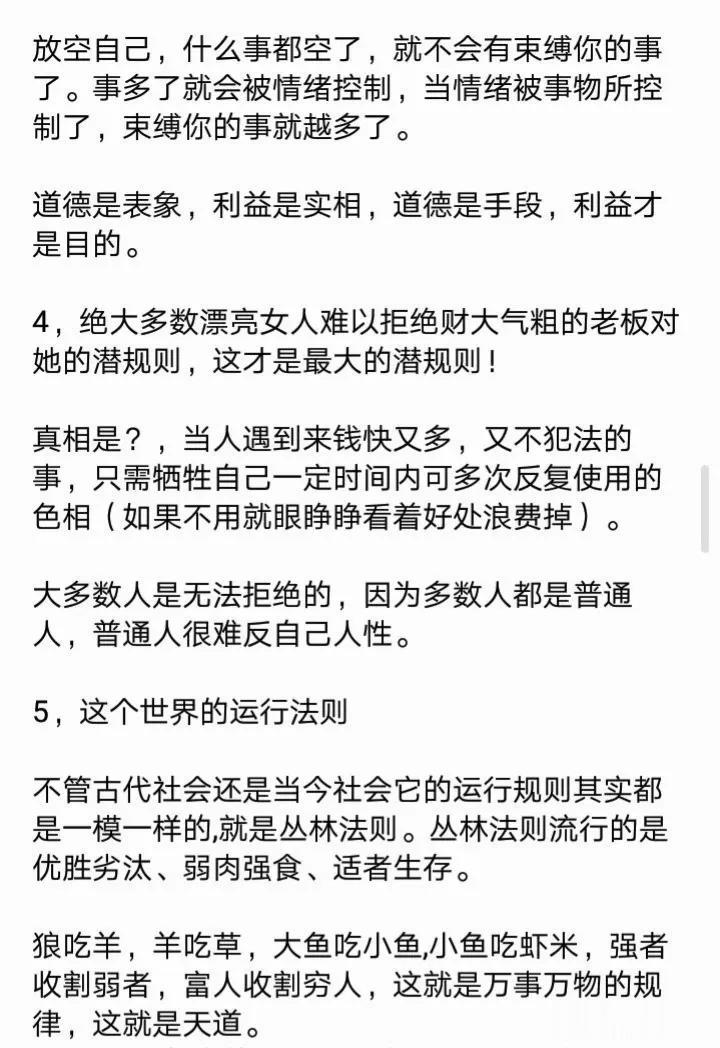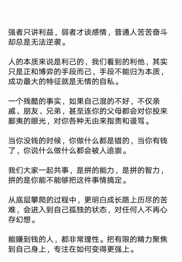 教大家一个心理博弈术,学会了再也没人敢欺负你!18个社会潜规则,打开你慧眼!23个例子告诉你,人性到底有多可怕?看完你就明白了,没有不择手段,哪有锦绣前程。 利益的最大获得者,是不守规矩和利用规矩的人! 人的本质来说是利己的,我们看到的利他,其实只是正和博弈的手段而己,手段不能归为本质,成功最大的特征就是无情的自私。 …… 这就是人性! 这就是人性句句扎心